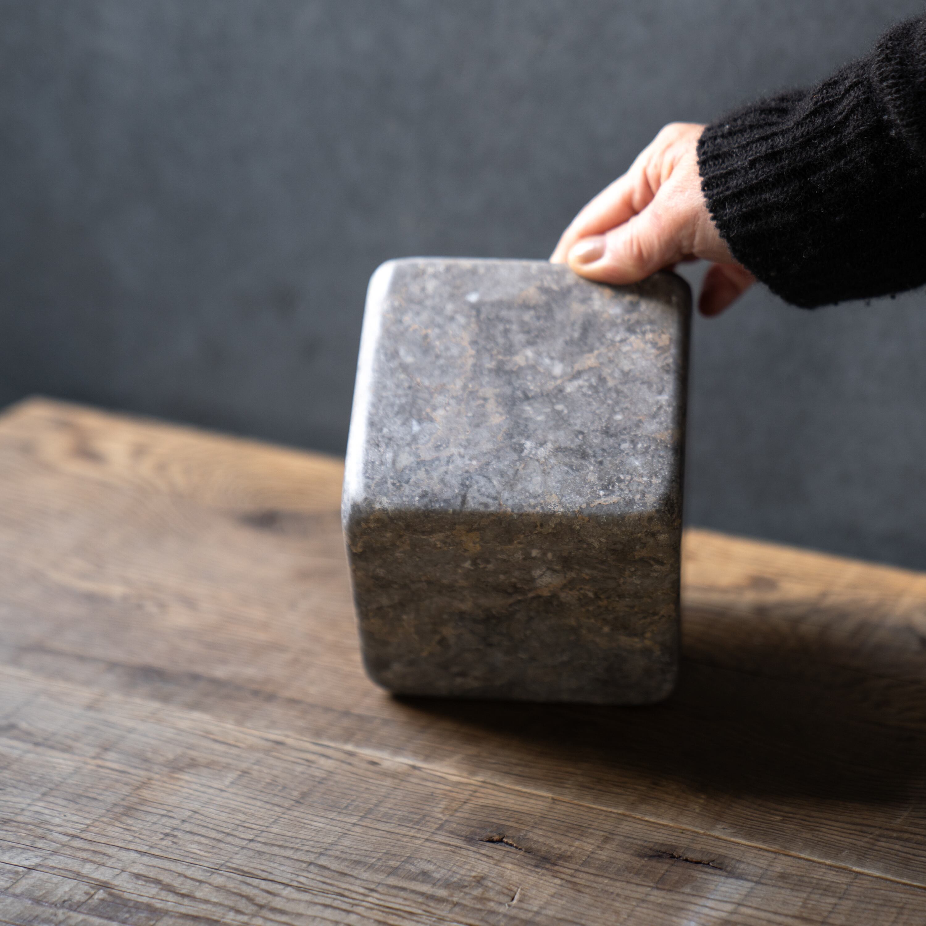 マット仕上げの大理石がクールな印象のキューブ型のポットカバー。コンパクトながら重厚感がありモダンなインテリアを演出します。