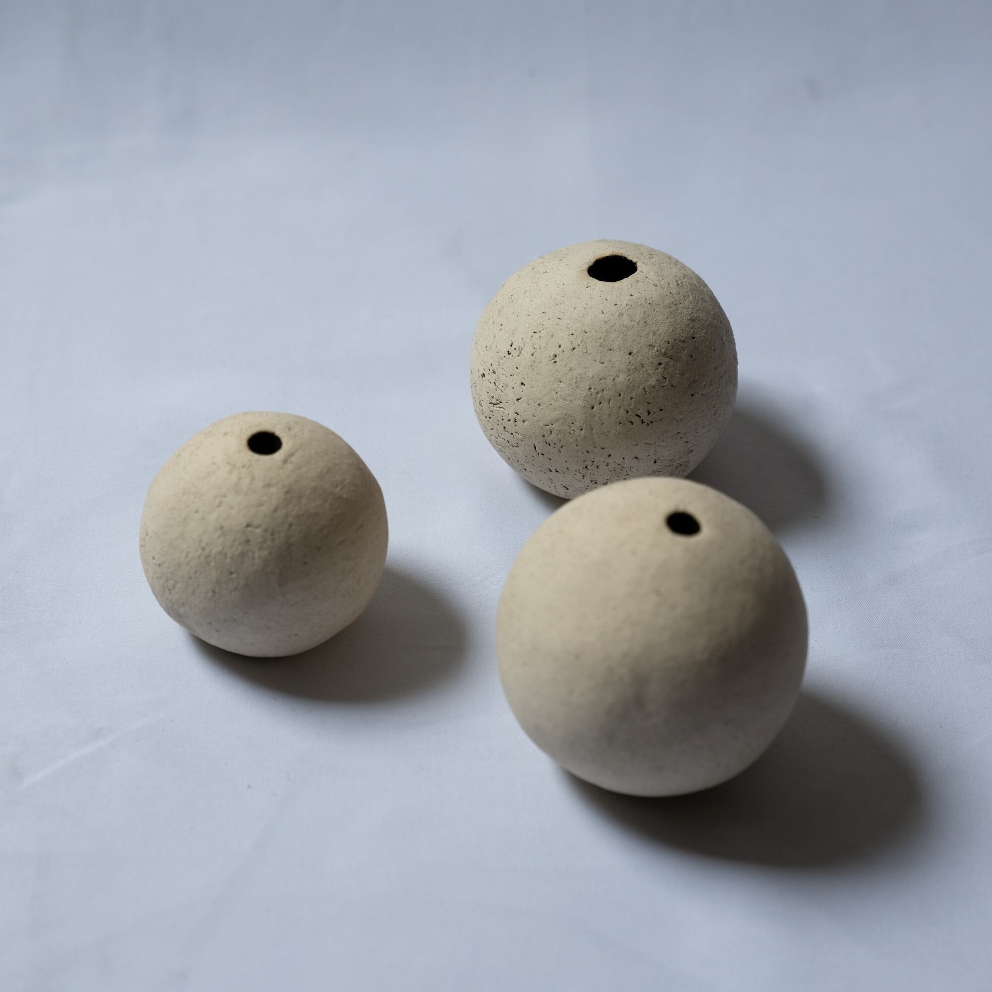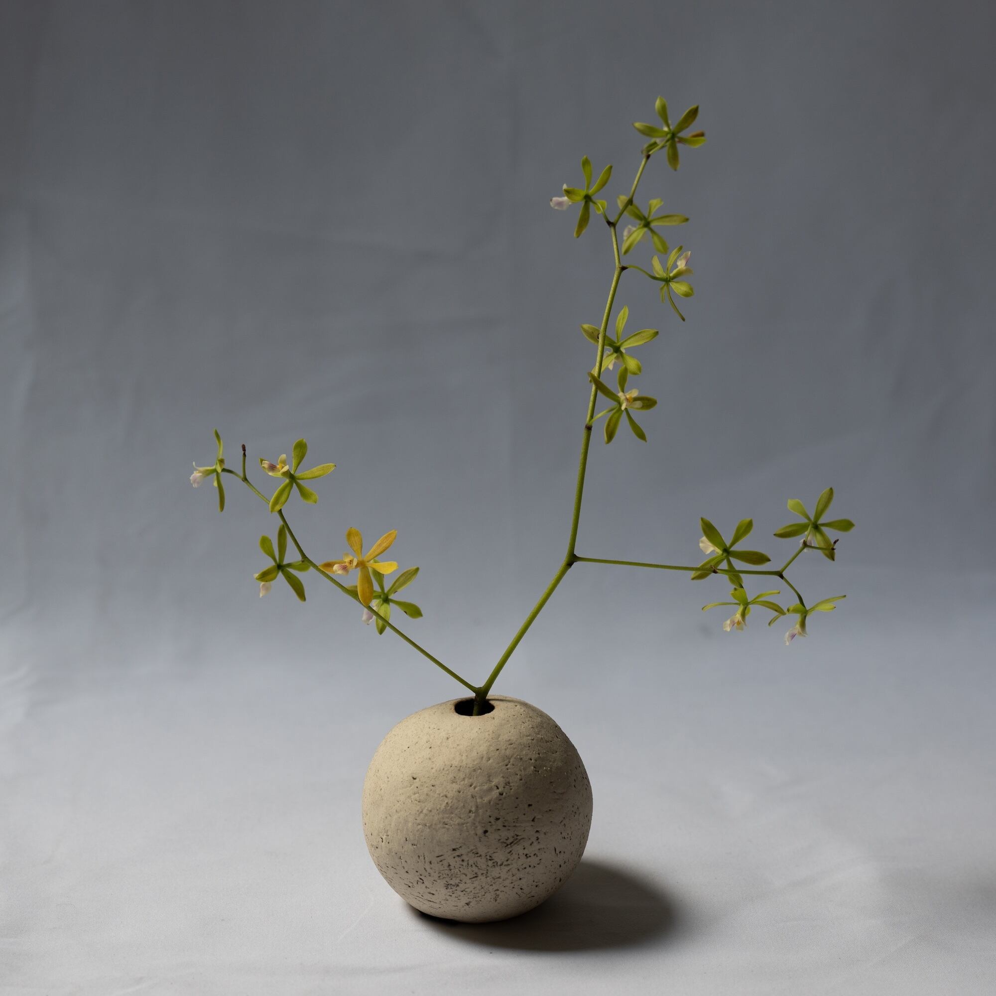 主張しすぎないシンプルな球体のフォルムと、手作りの自然な風合いの陶器は、どんな花を活けてもその美しさを引き立てます。