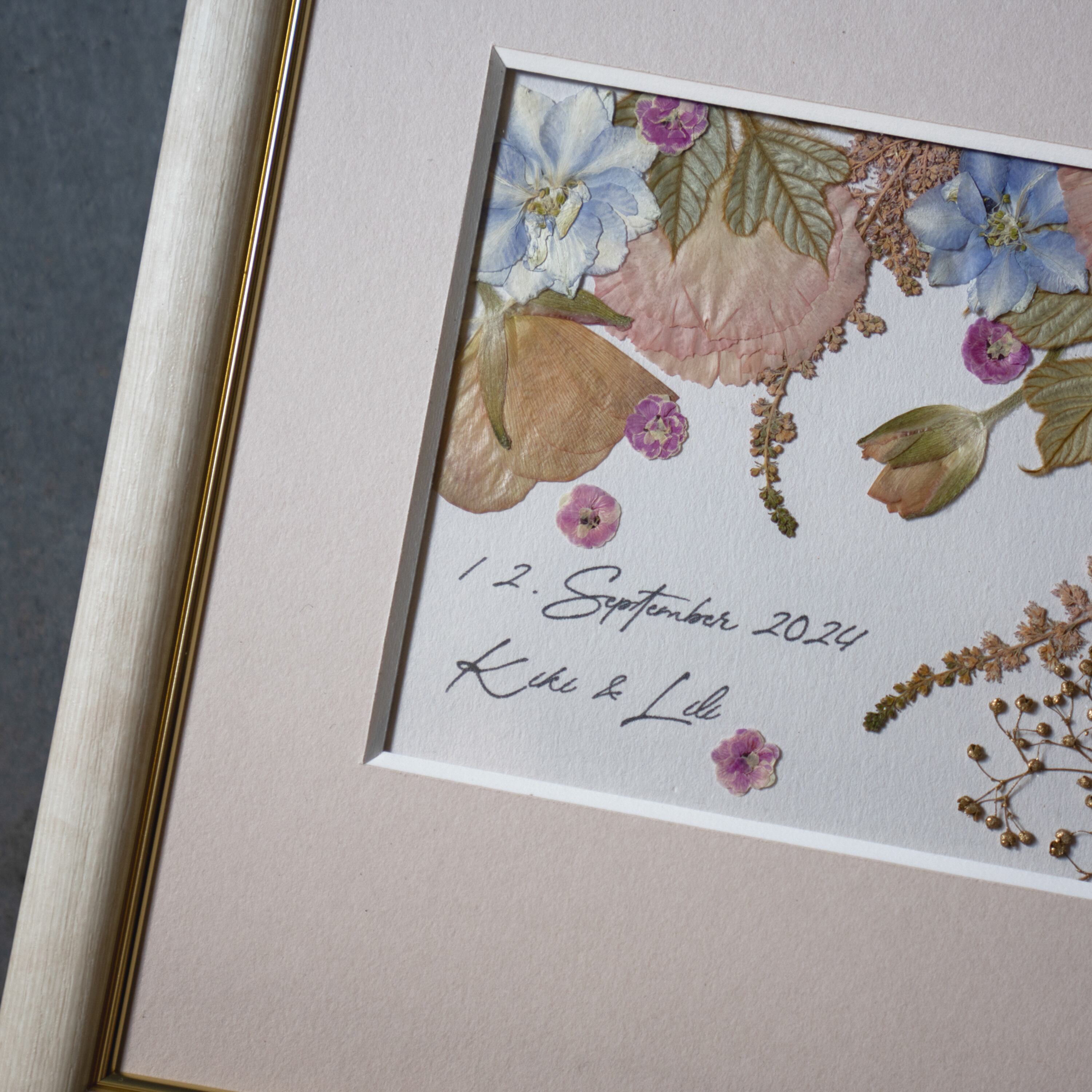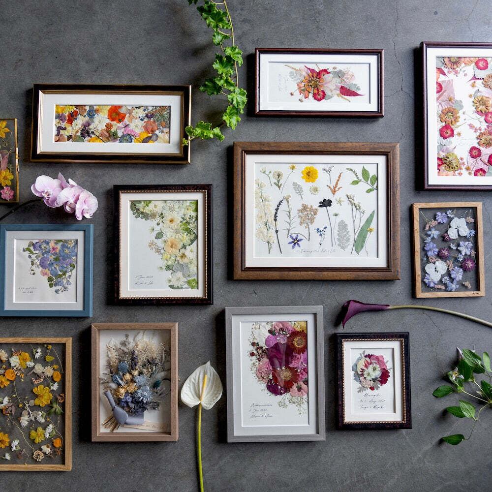押し花が見える部分と、その周囲の余白のバランスが絶妙で、品良く仕上がります。