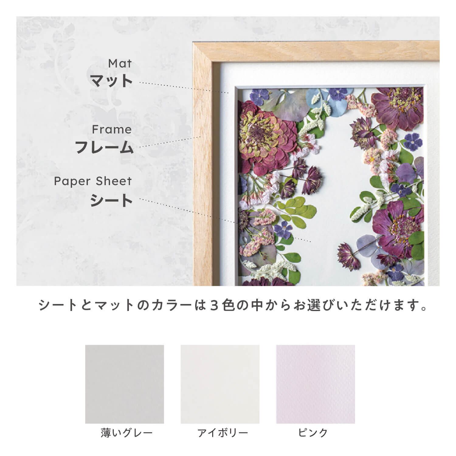 額の中のシートとマットを、アイボリー・薄いグレー・ピンクの3色からお選びいただけます。