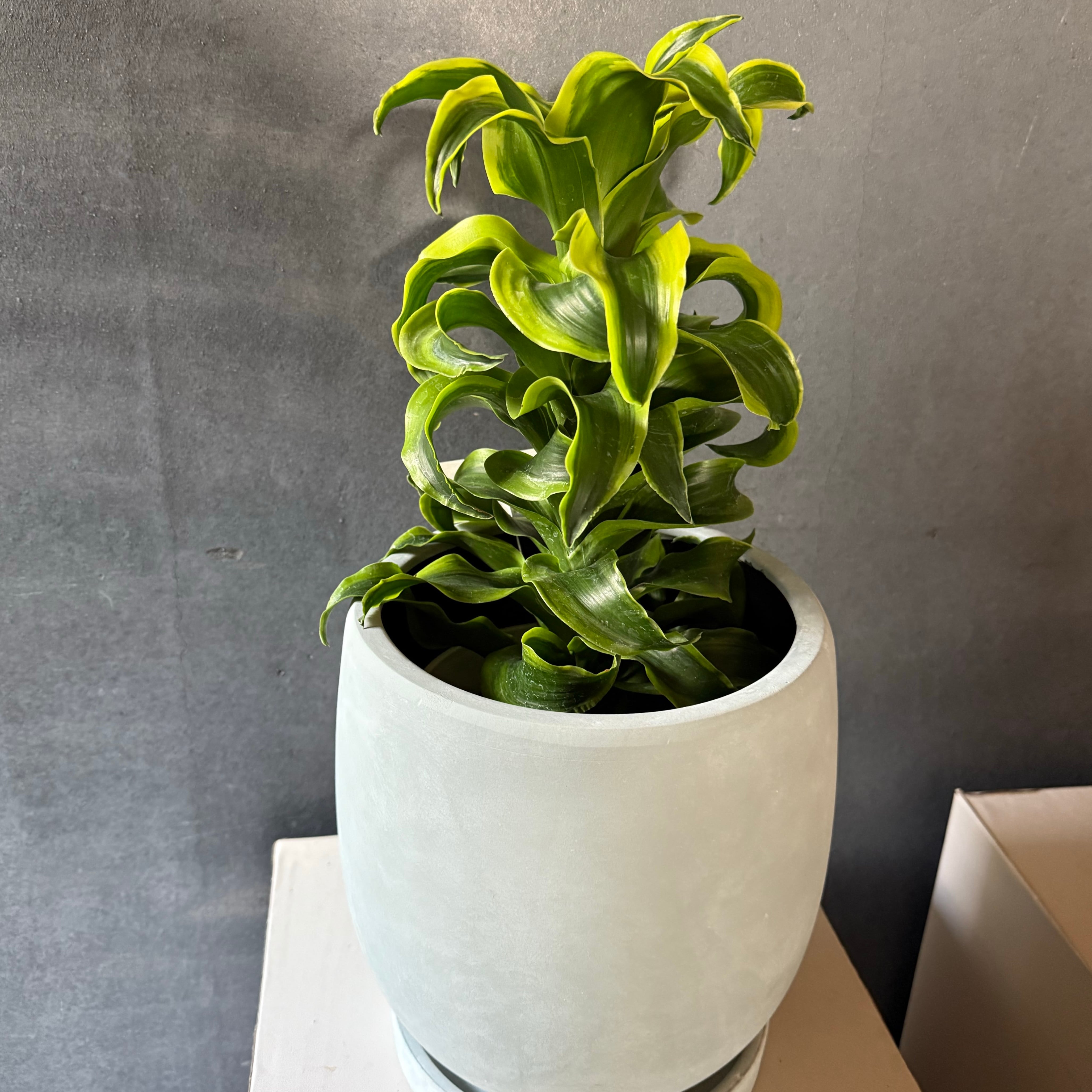 コンクリートやセメントを思わせる、マットで無機質な質感が魅力の植木鉢です。
