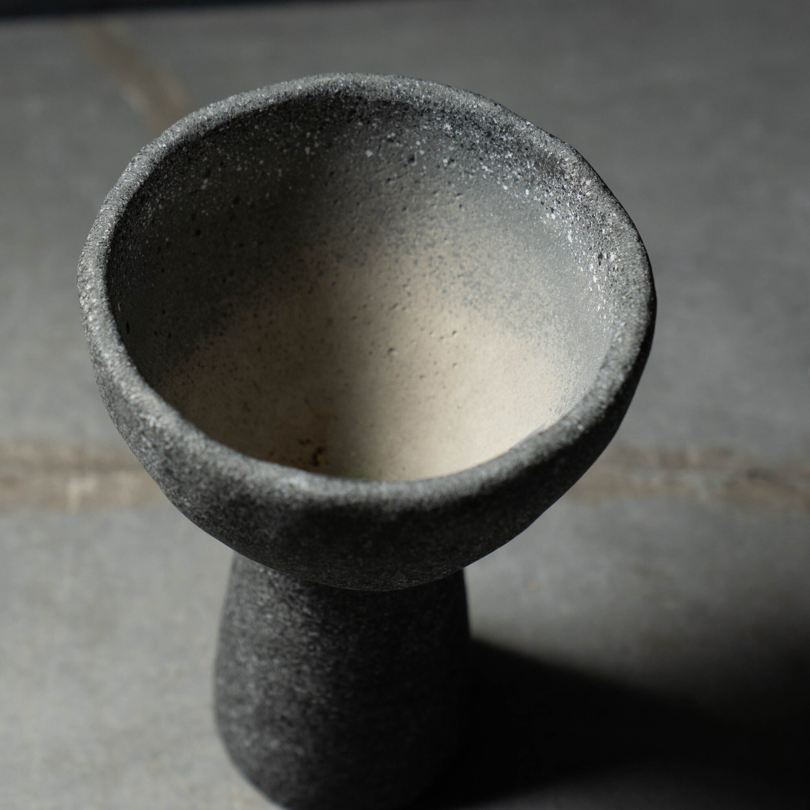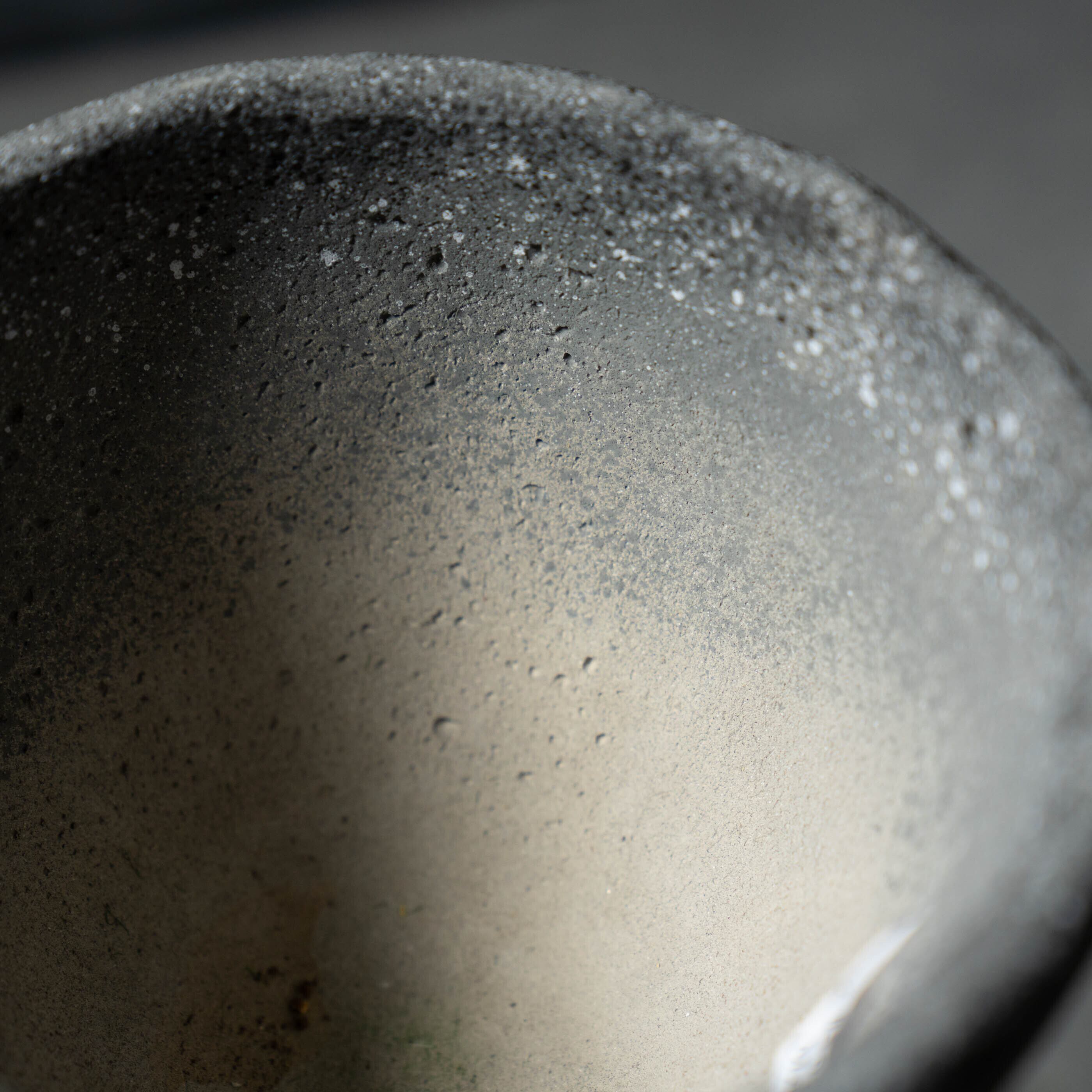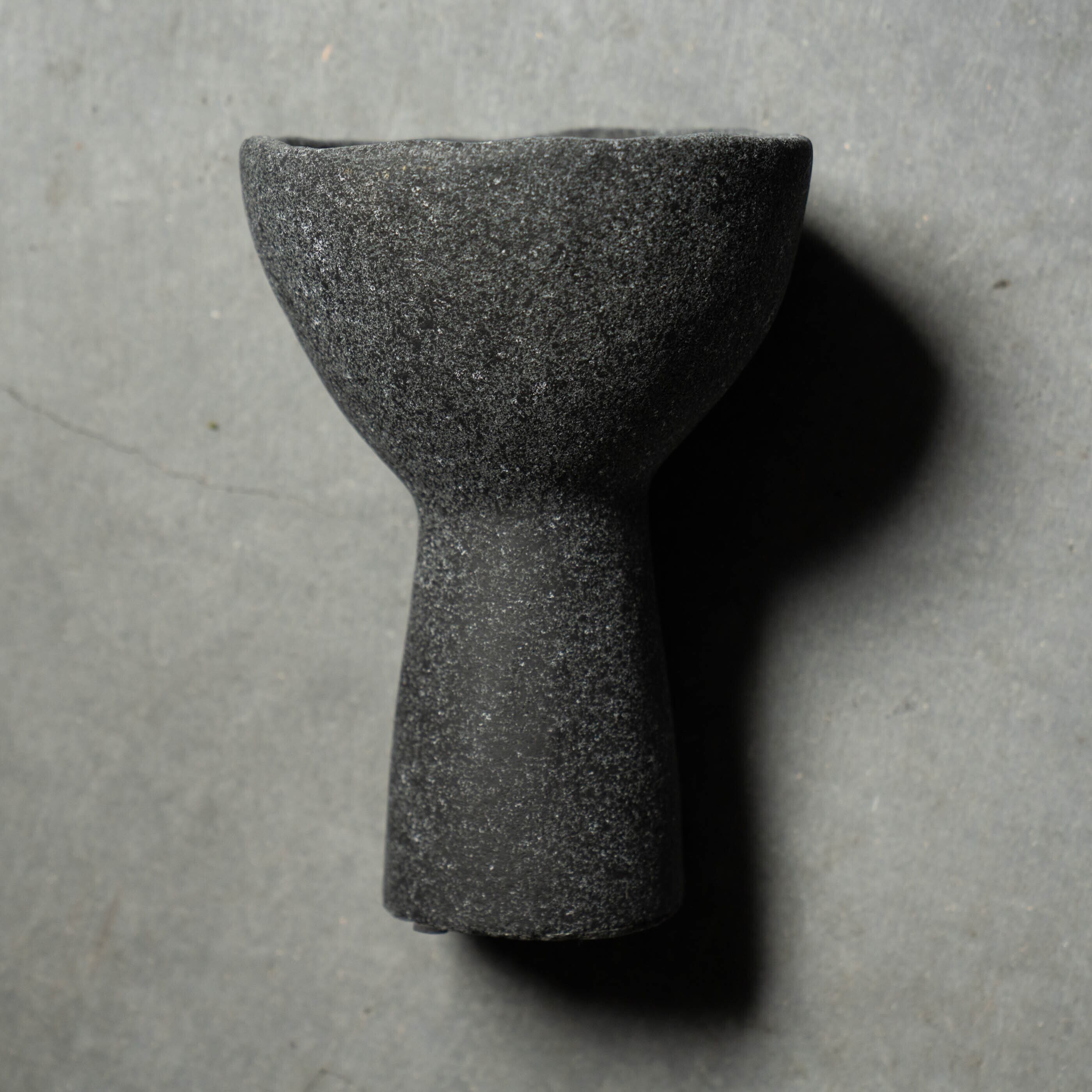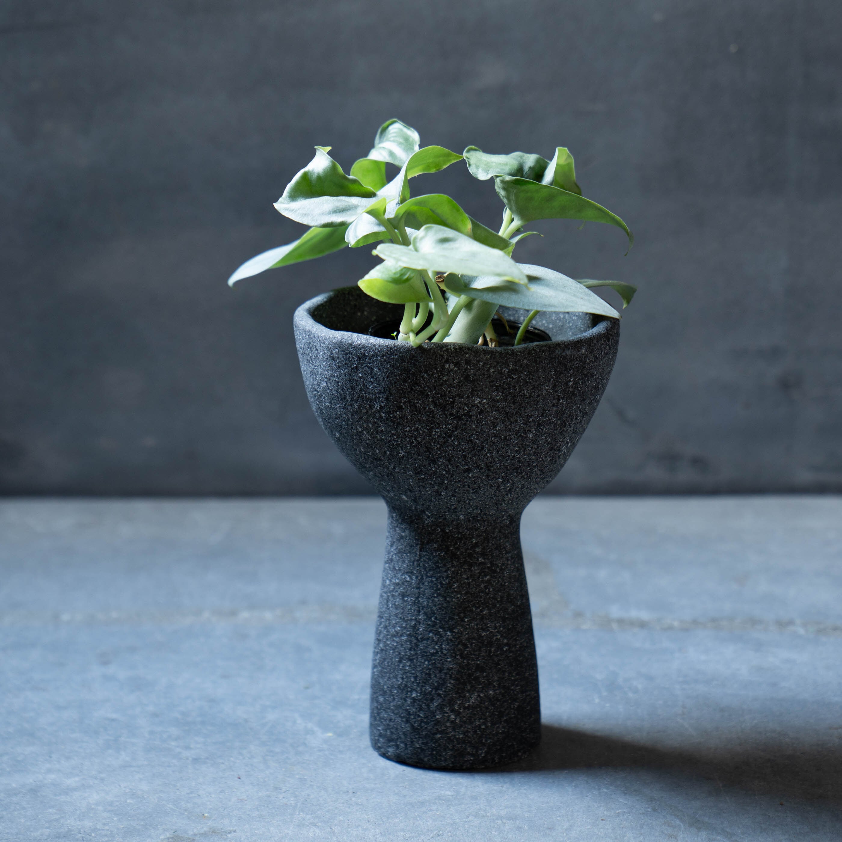 ざらりとした石の質感と、大きく開いた口元を持つユニークなフォルムが特徴のプランターです。