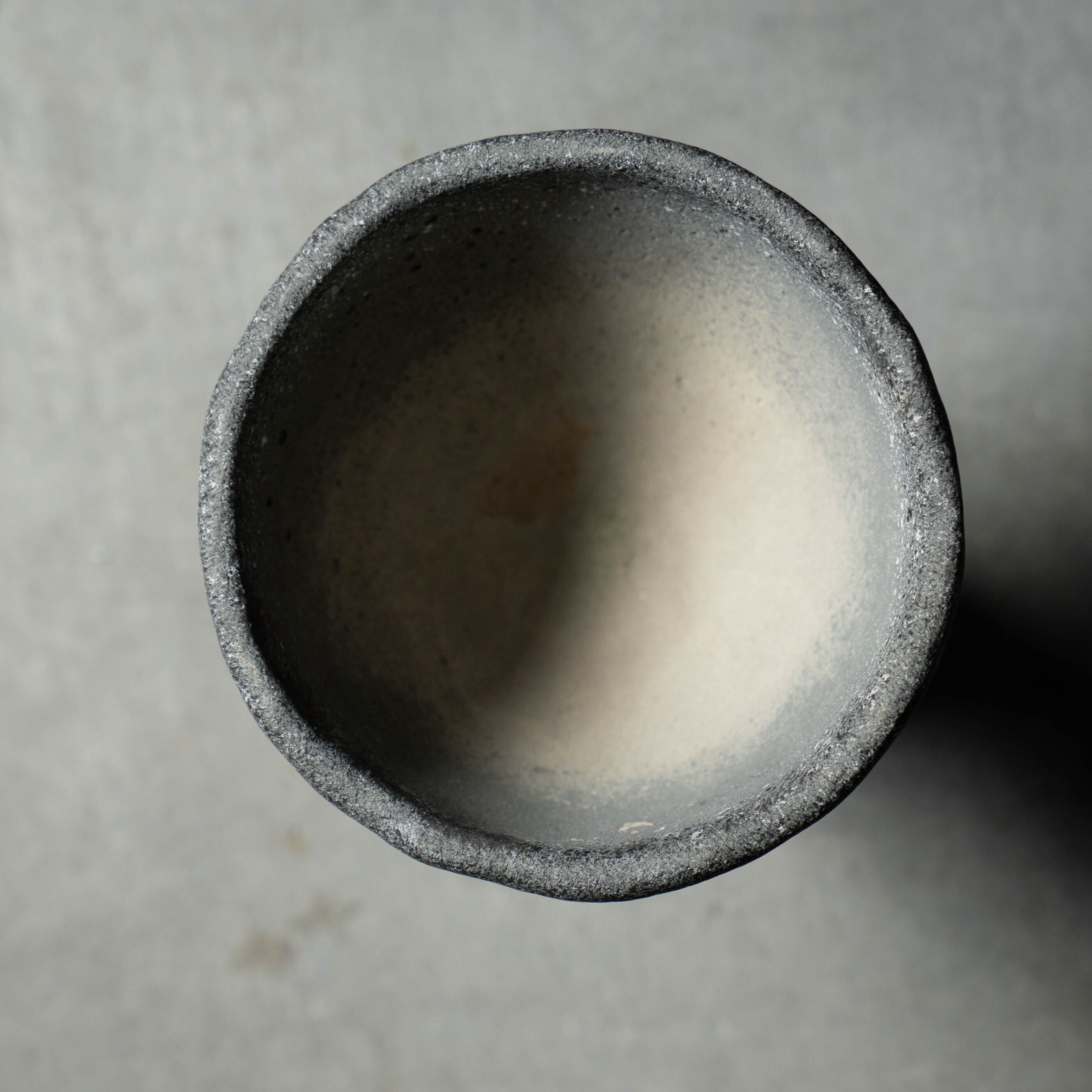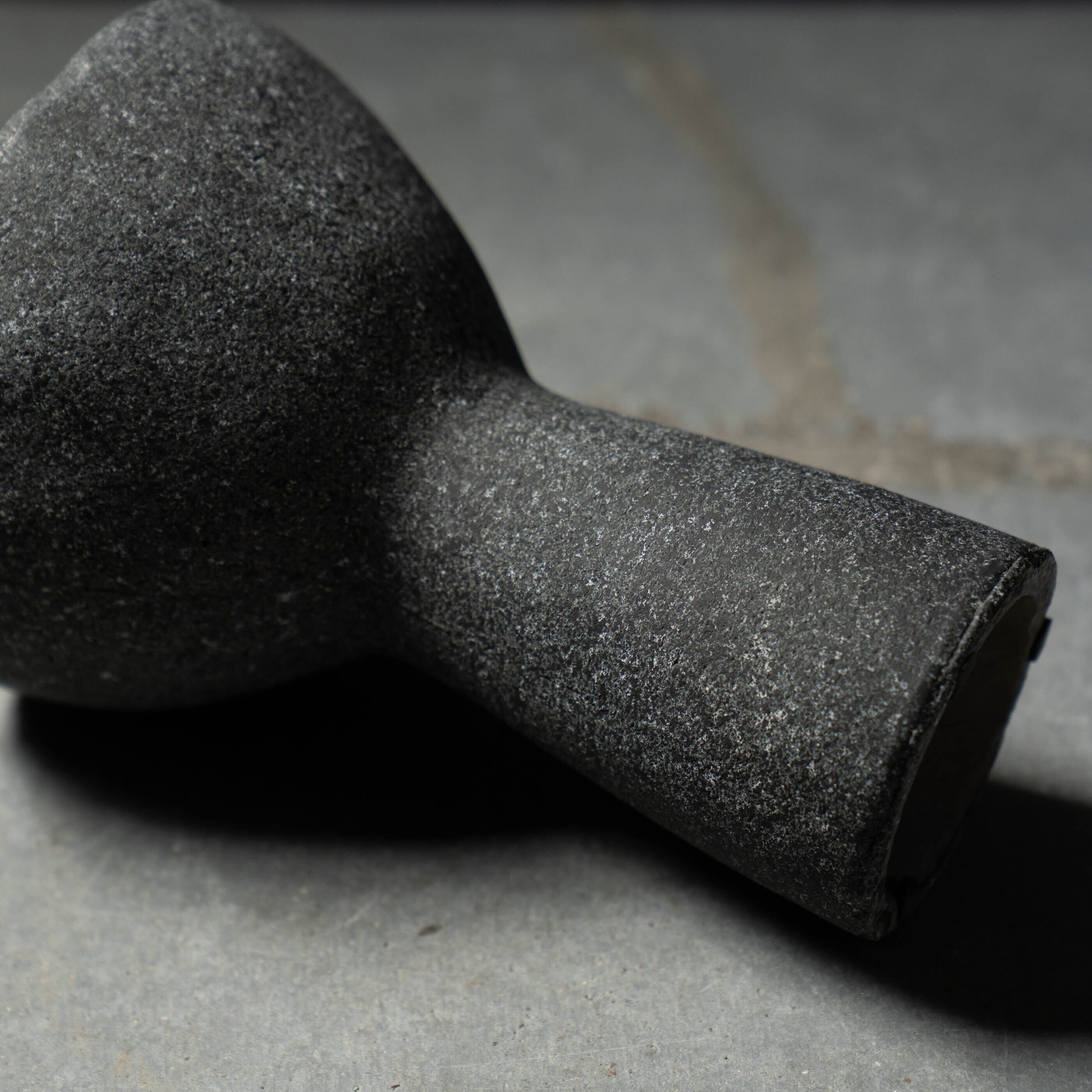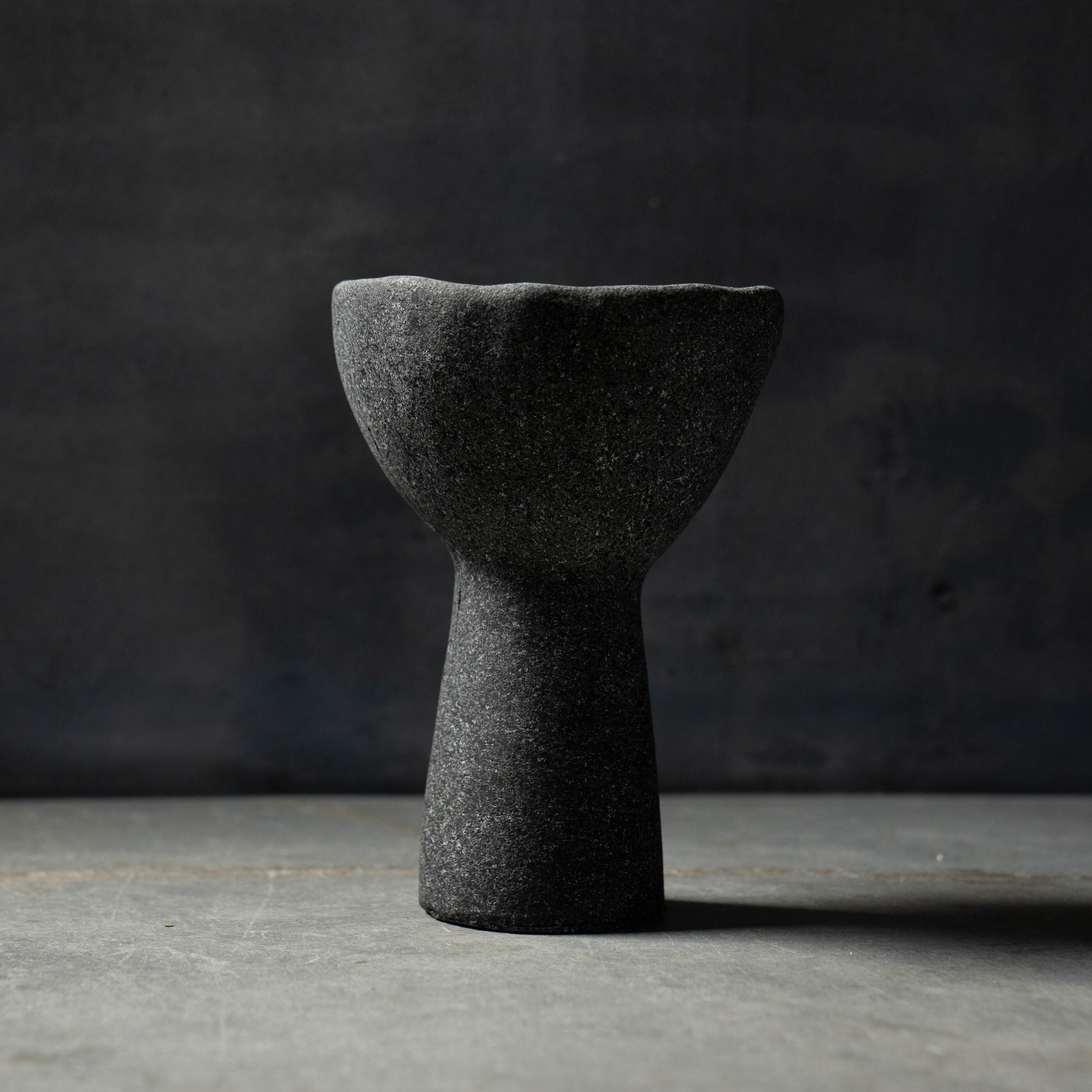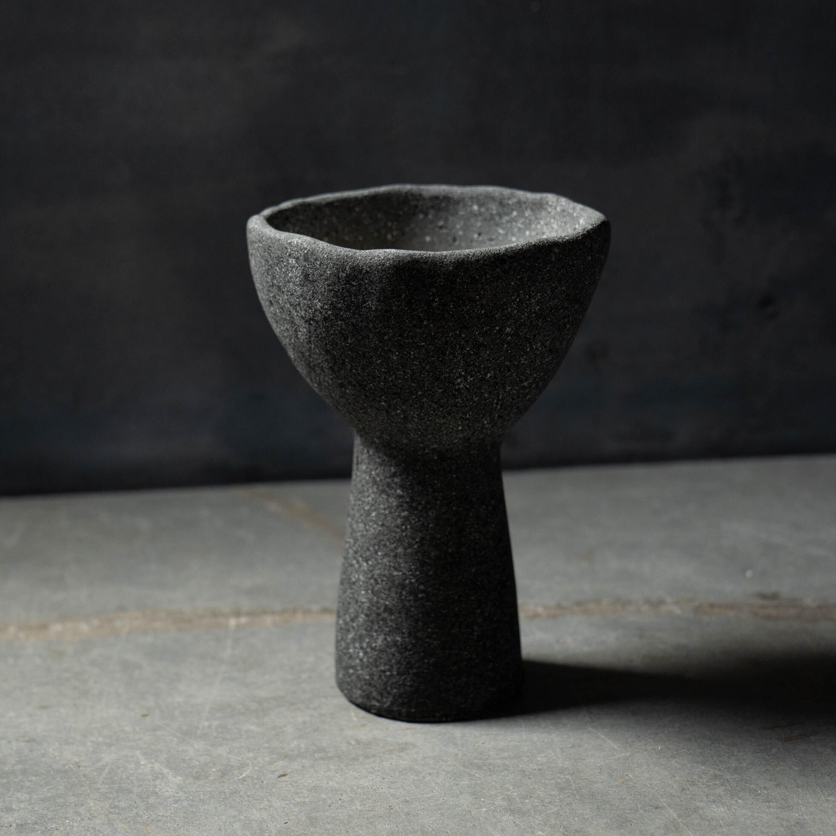 ざらりとした石の質感と、大きく開いた口元を持つユニークなフォルムが特徴のプランターです。