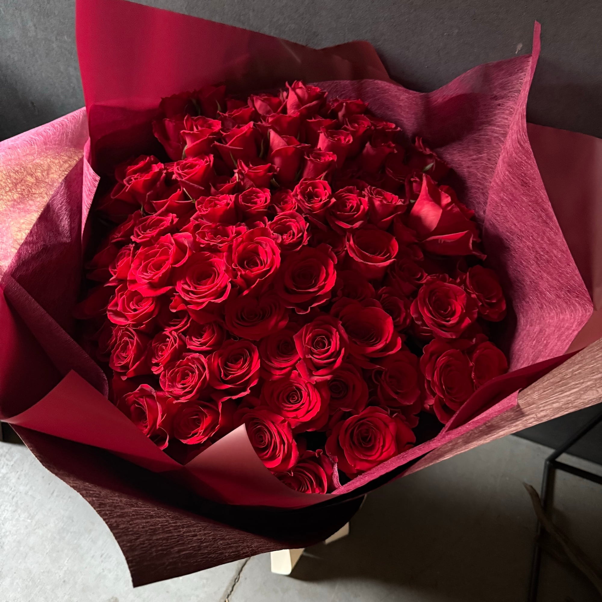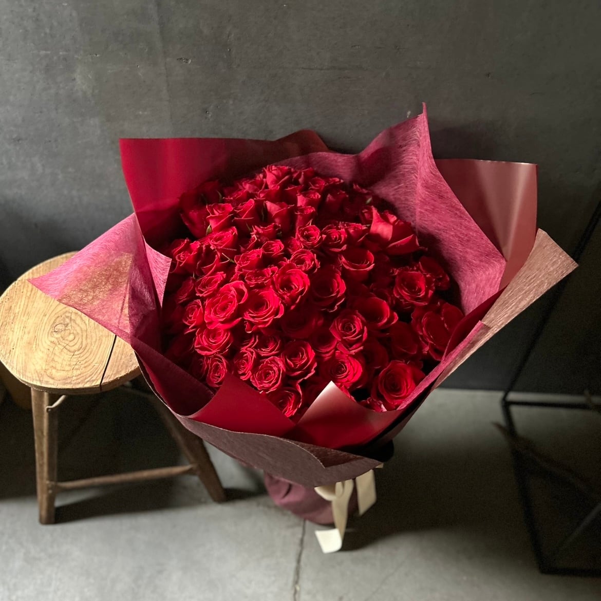 当店は実店舗のフラワーショップも経営しているので、フレッシュで質のいいバラがご用意可能です。とても美しい迫力満点なバラの花束に、きっと相手の方も喜んでくれるはず。