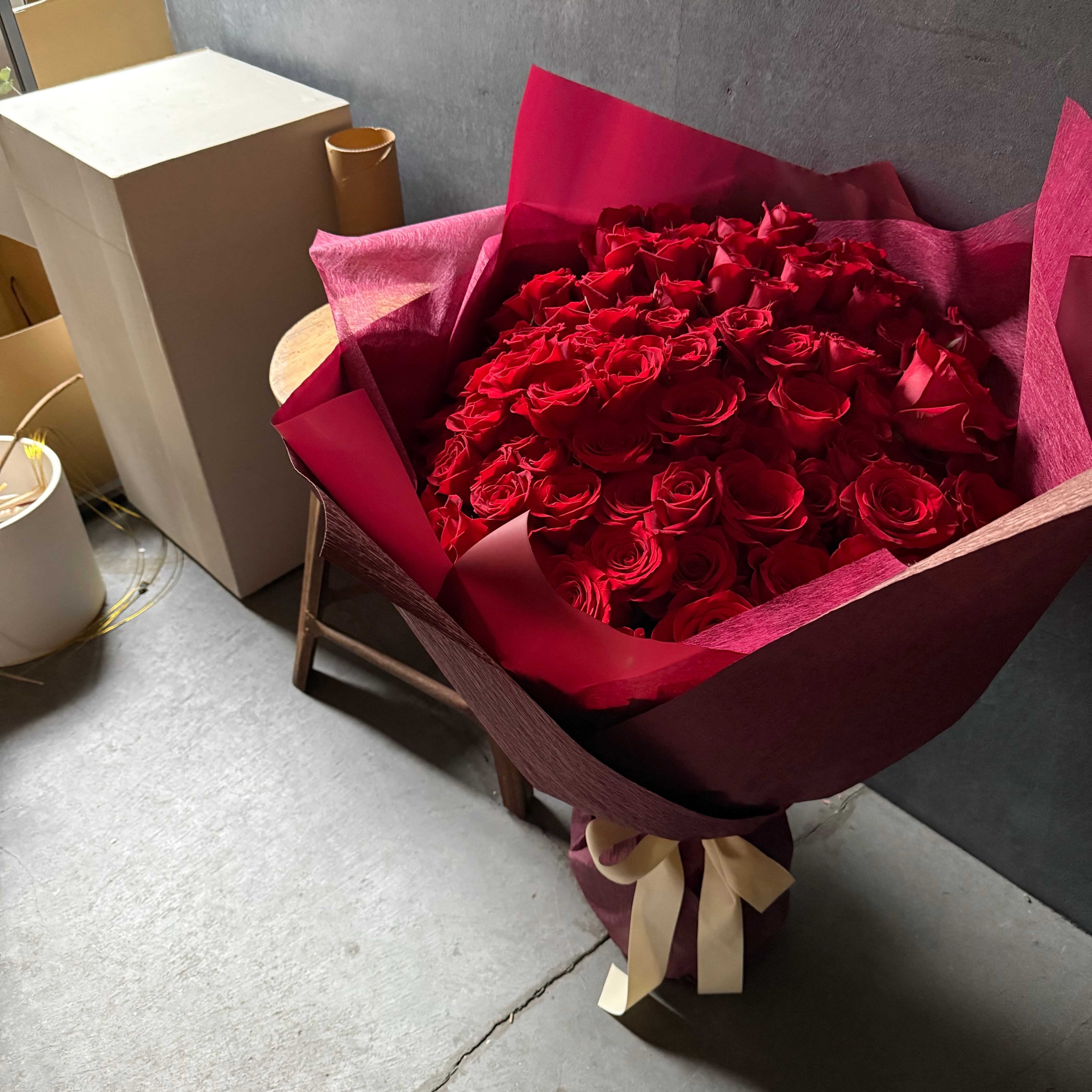 込められた意味に合わせて本数を選べる、プロポーズにピッタリな赤バラブーケ。