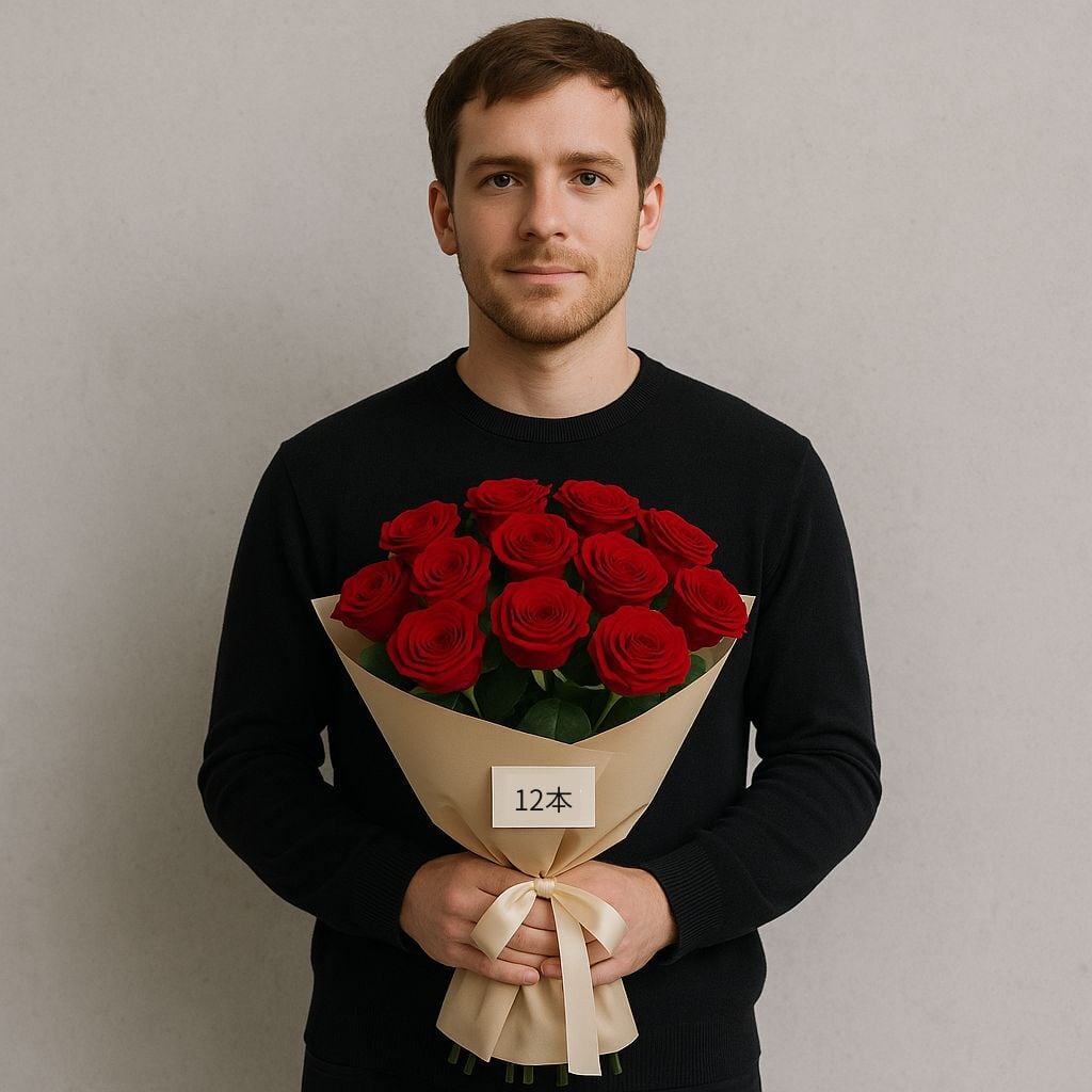 《プロポーズに》本数を選べる生花の赤バラブーケ《12本》