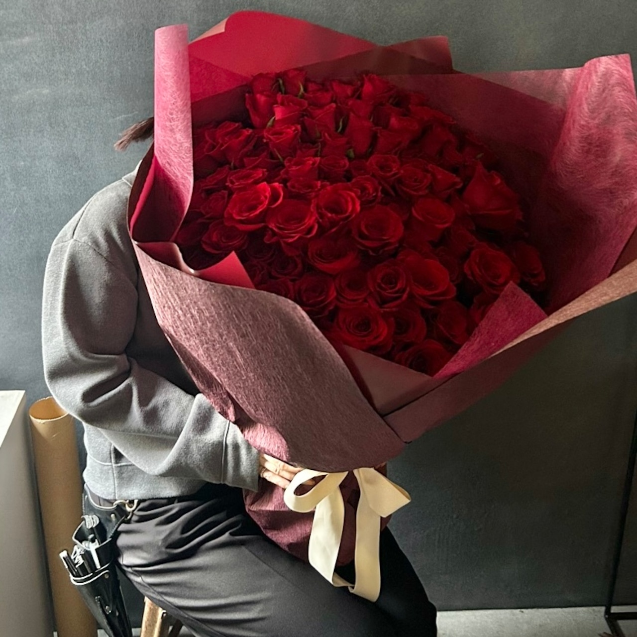 当店は実店舗のフラワーショップも経営しているので、フレッシュで質のいいバラがご用意可能です。とても美しい迫力満点なバラの花束に、きっと相手の方も喜んでくれるはず。