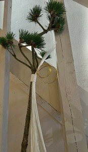 伝統的な「松」に、流れるようなラインの「水引」を合わせた、現代のライフスタイルに馴染むスタイリッシュなお正月飾りです。