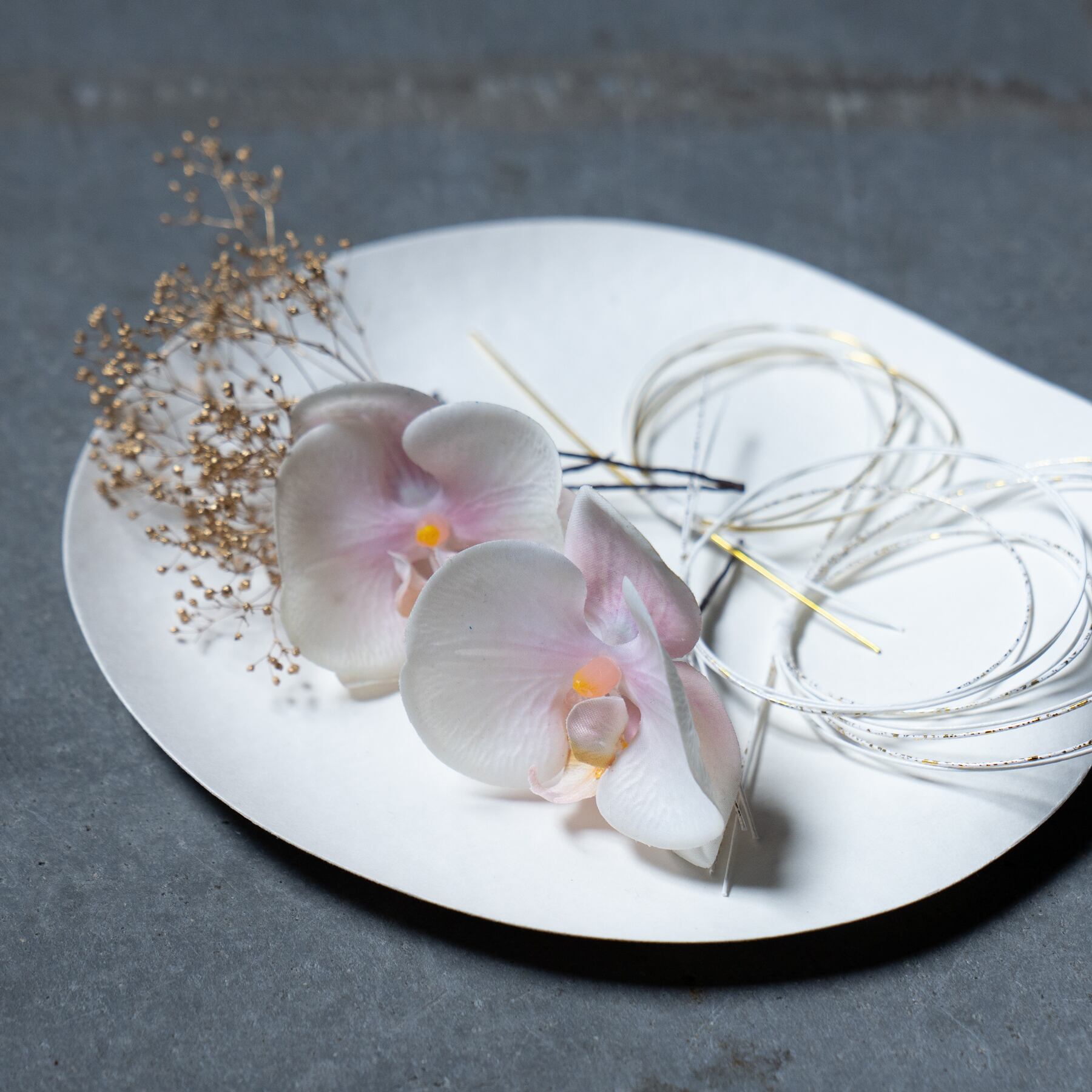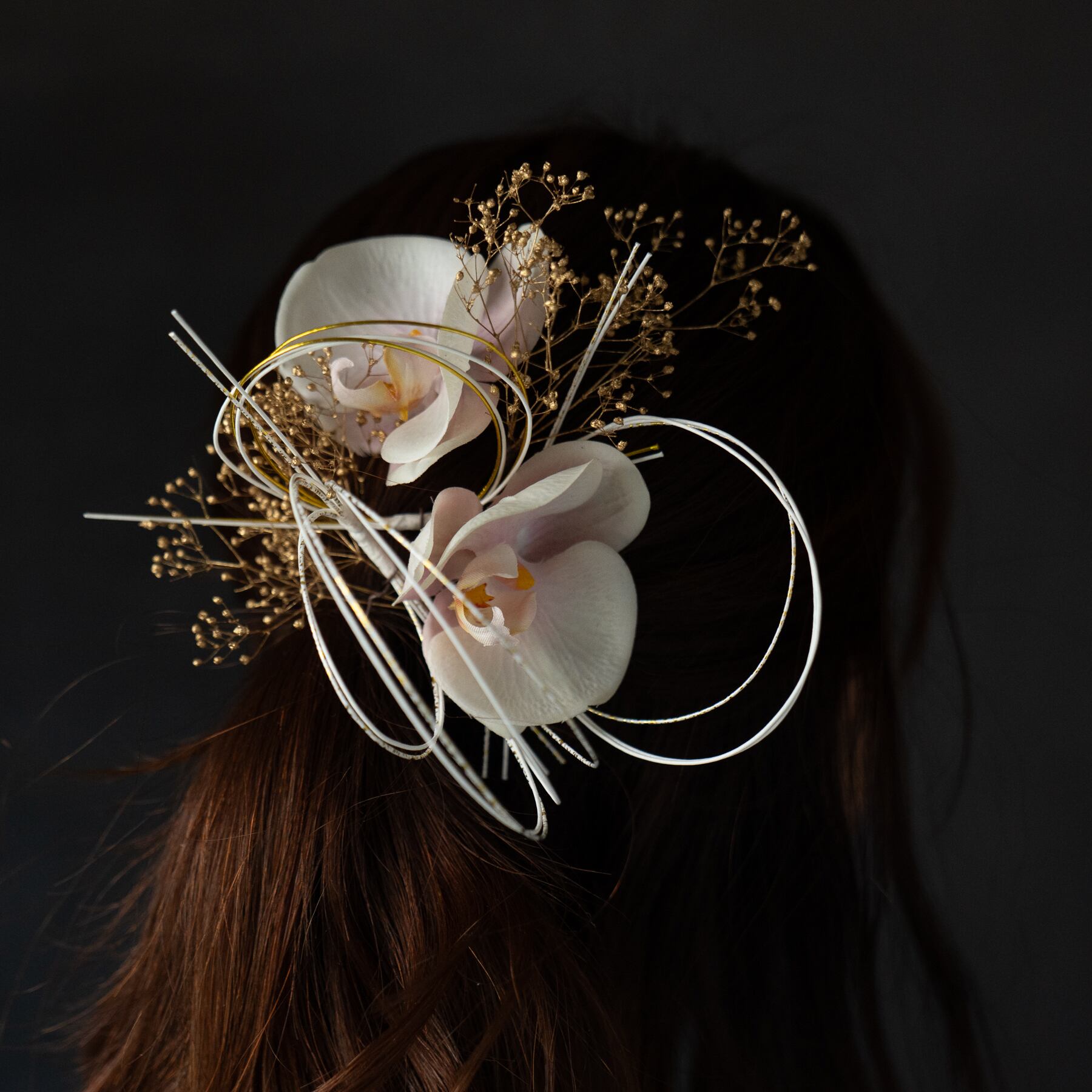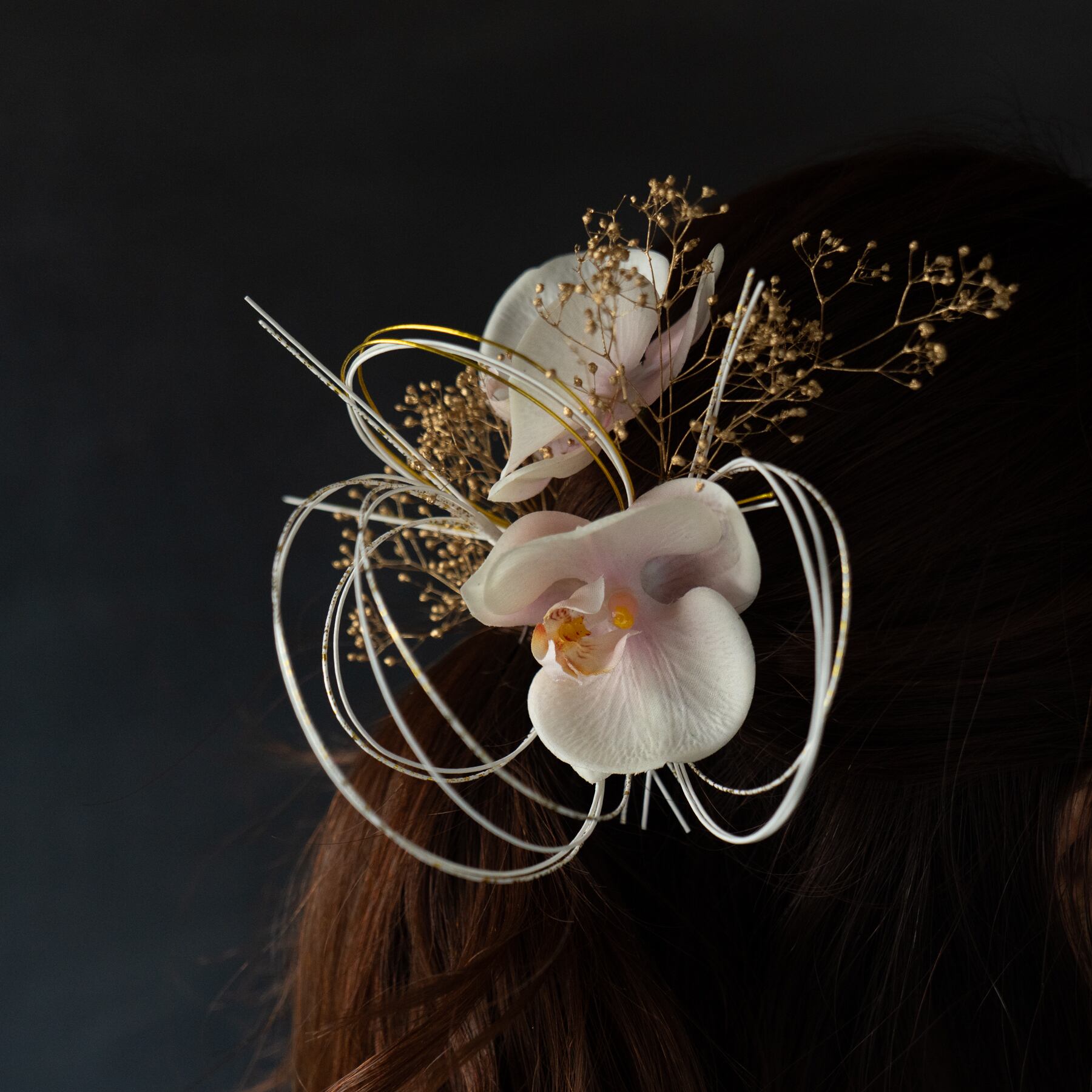 胡蝶蘭が特別な日を彩る、髪飾り(ヘッドフラワー)です。