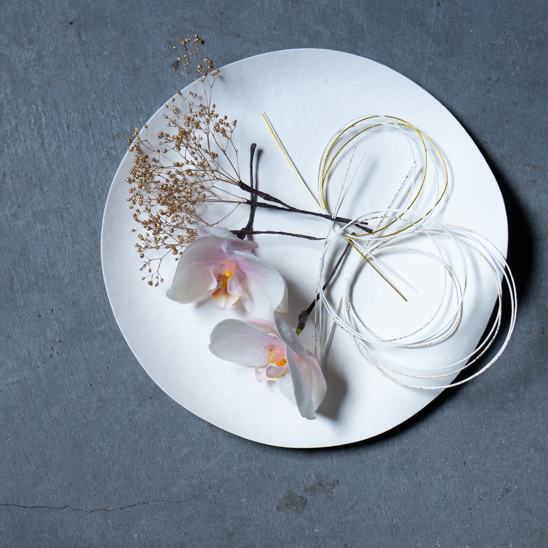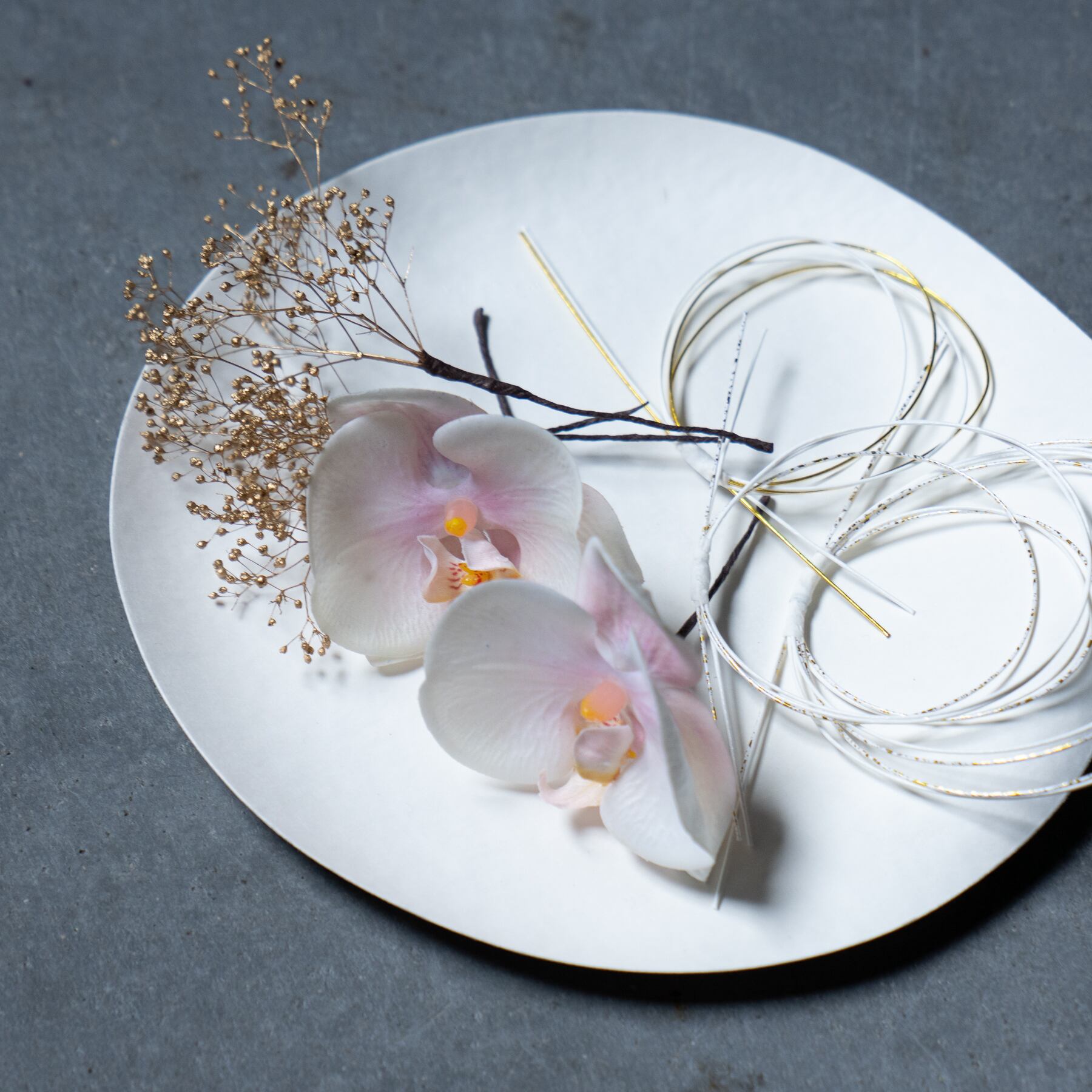 ゴールドが上品な、ドライフラワーの小花も華やかなアクセントに◎