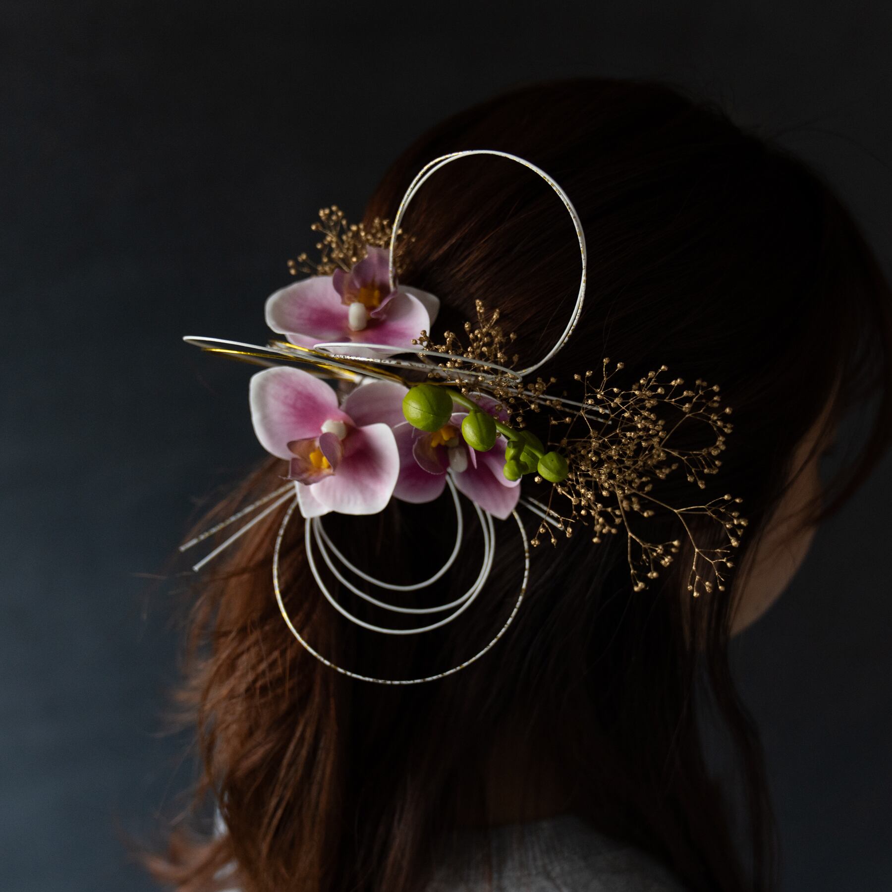 ヘッドフラワー 胡蝶蘭 水引 成人式 結婚式 披露宴 前撮り フォトウェディング 七五三 振り袖 色打掛 白無垢 ヘッドパーツ ヘッドドレス アーティフィシャルフラワー 造花 おしゃれ 髪飾り振袖髪飾り 色打掛髪飾り 白無垢髪飾り