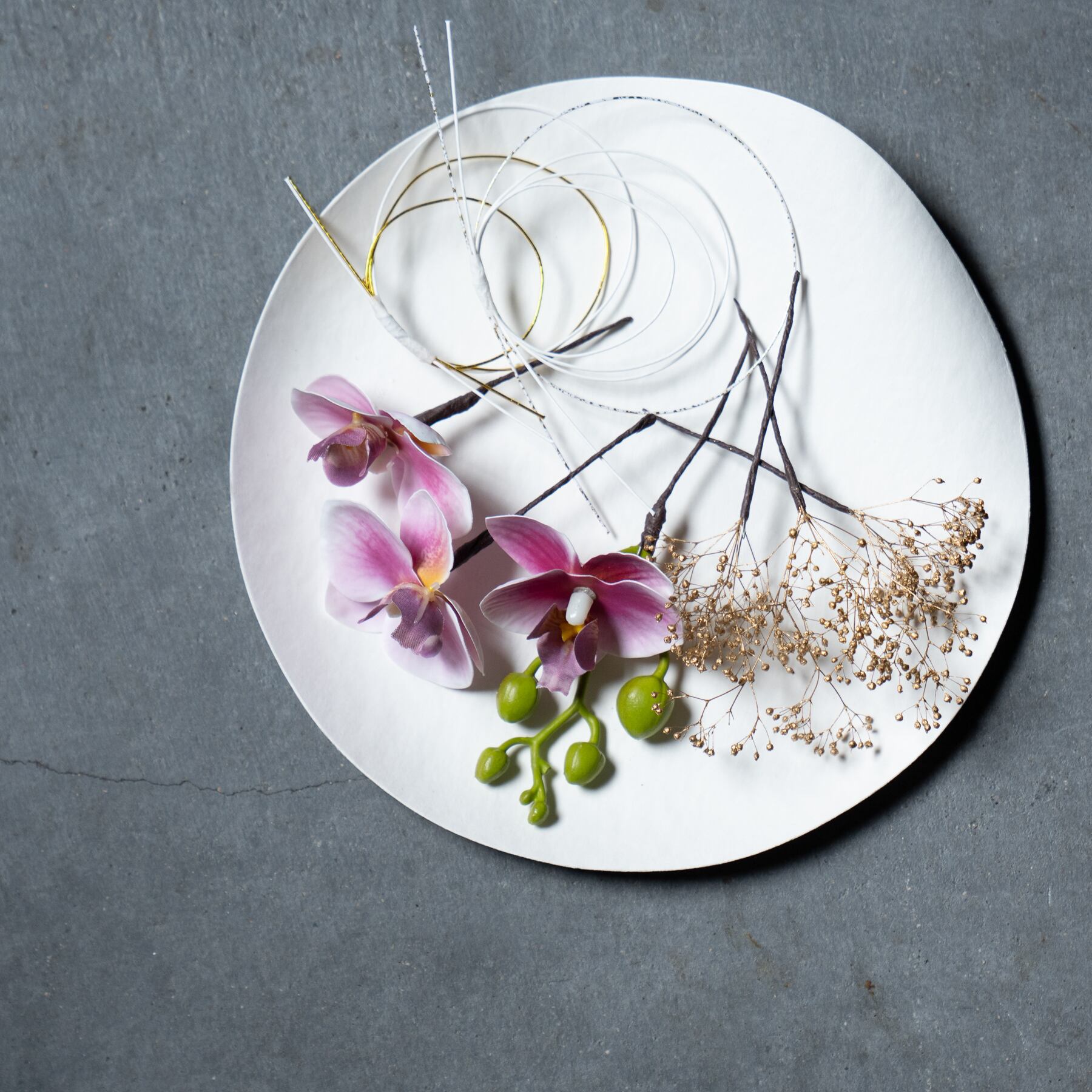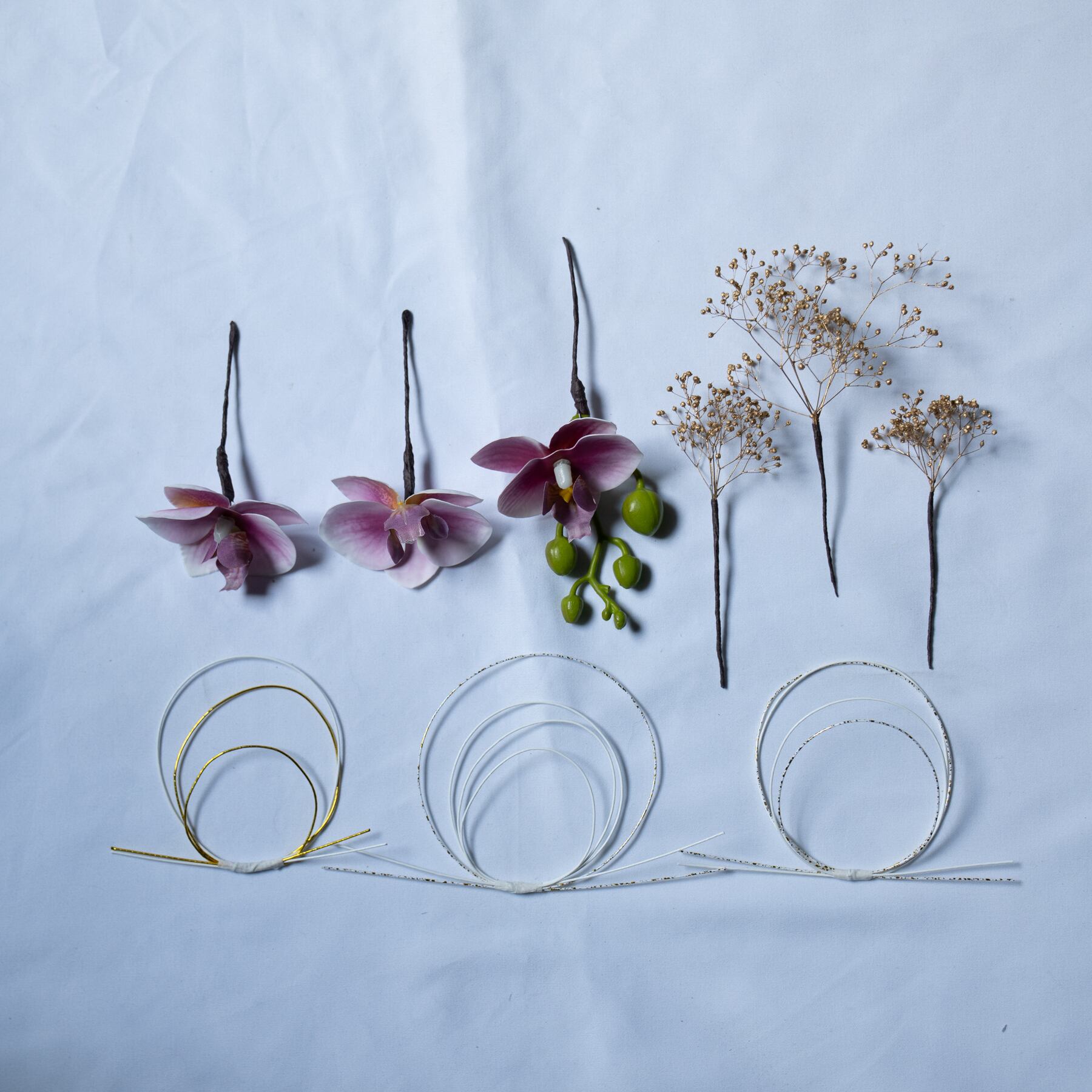 一つ一つ独立したパーツでご用意しておりますので、アップスタイルやダウンヘア、編み込みなど、ヘアスタイルやシーンに合わせて自由な配置でアレンジをお楽しみください。