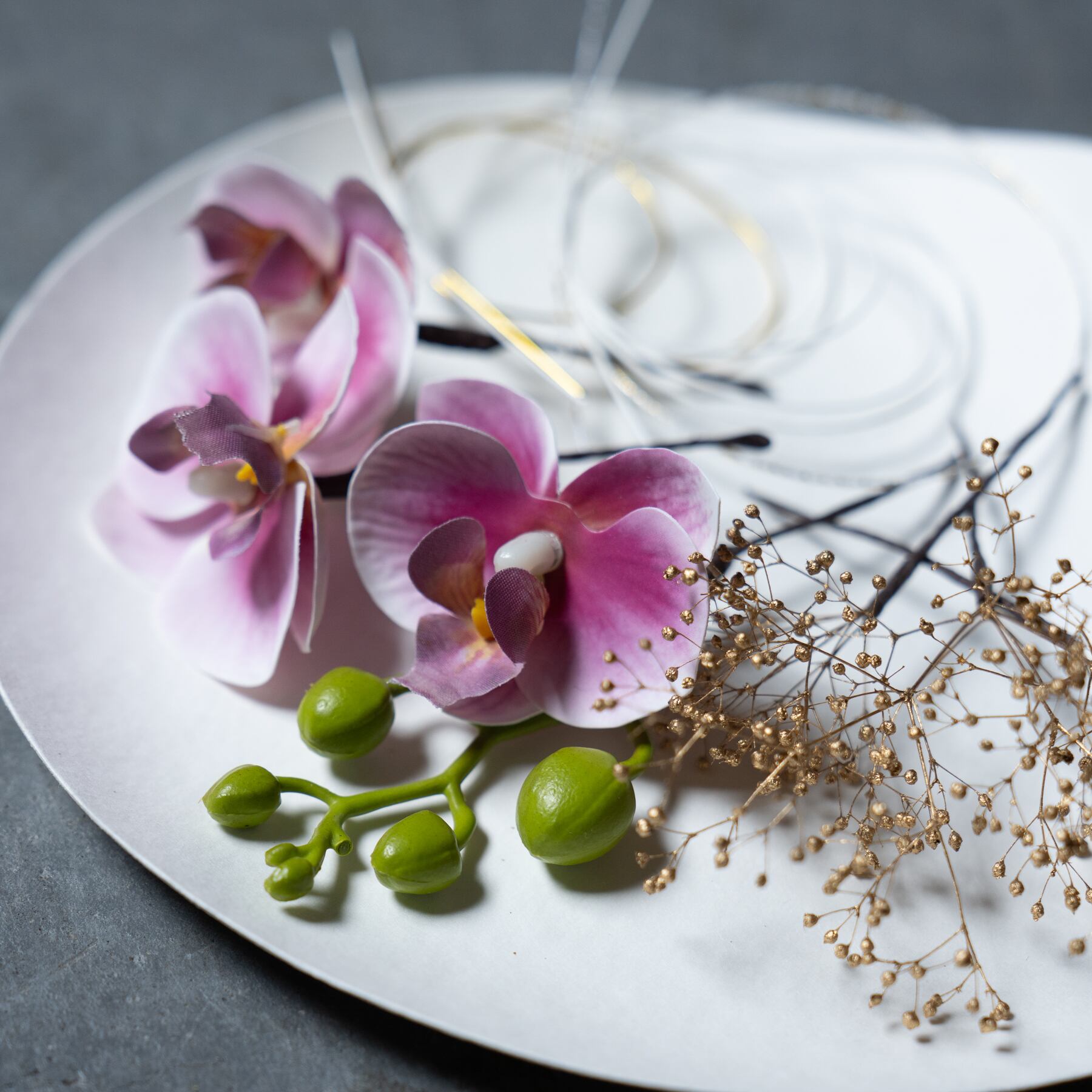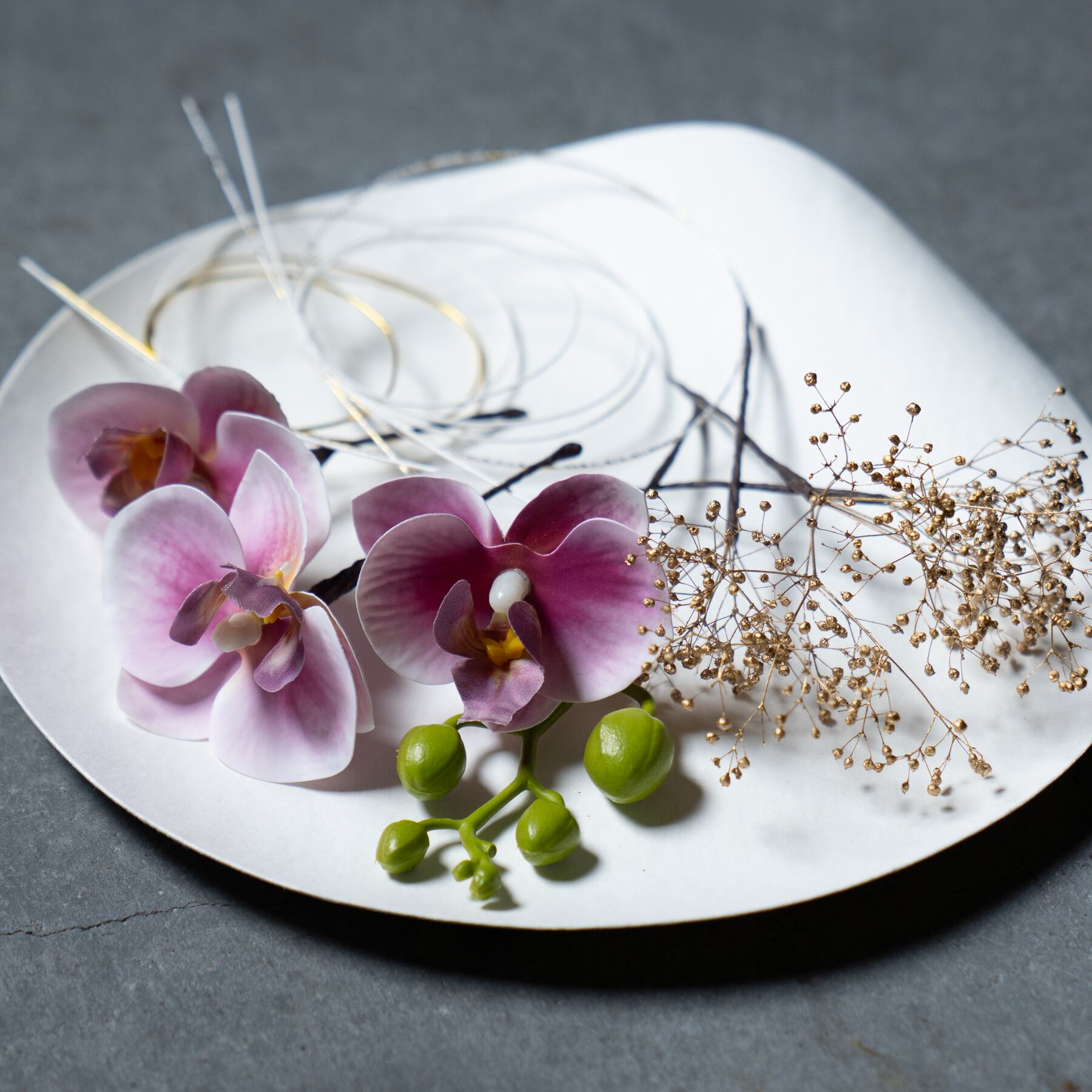 胡蝶蘭が特別な日を彩る、髪飾り(ヘッドフラワー)です。