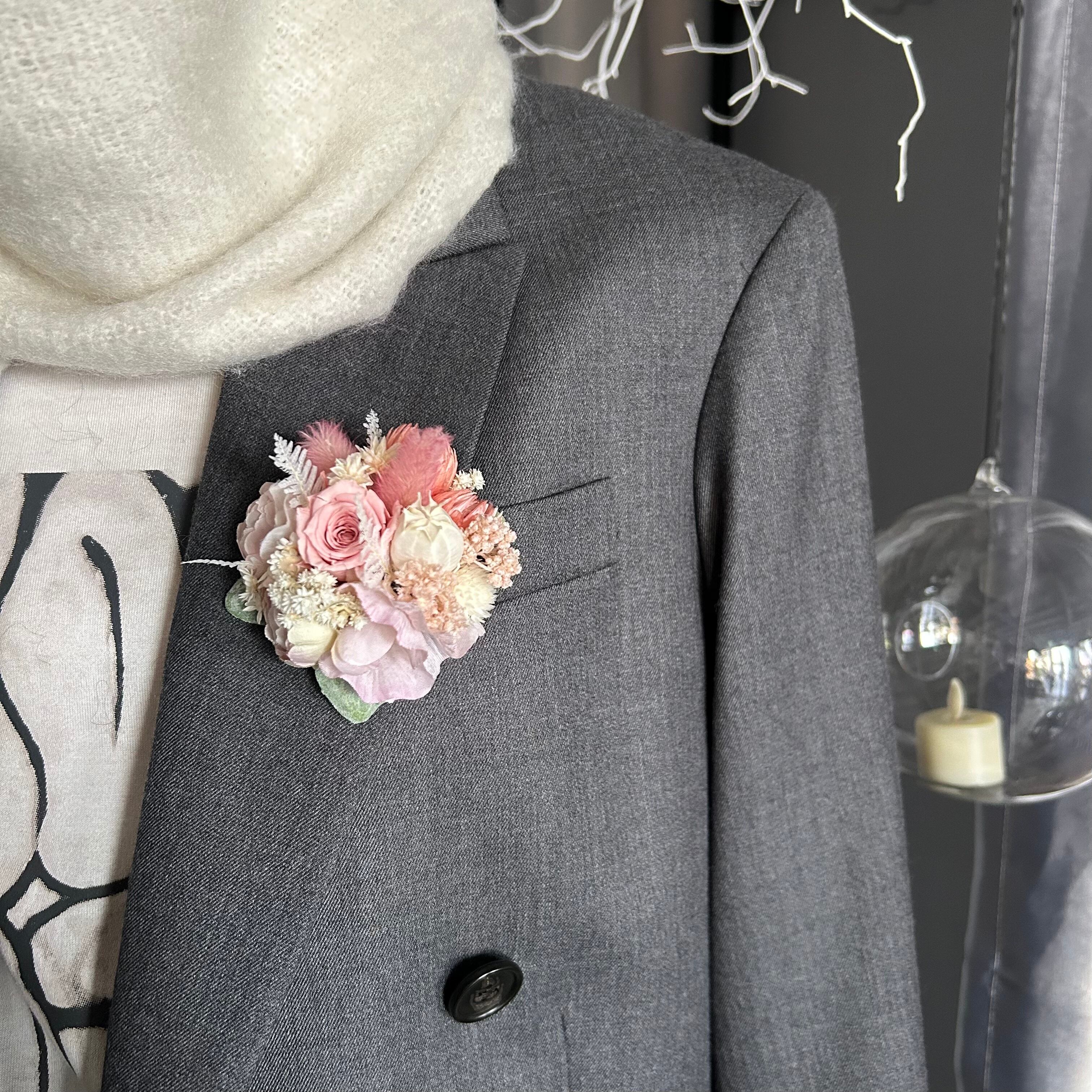 入学式や卒業式、大切なハレの日を彩る、ドライフラワーとプリザーブドフラワーを贅沢に使用したコサージュです。