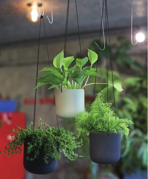 お気に入りのグリーンを吊るすだけで、壁や窓辺に新たな表情が生まれ、空間に奥行きと広がりをもたらしてくれます。