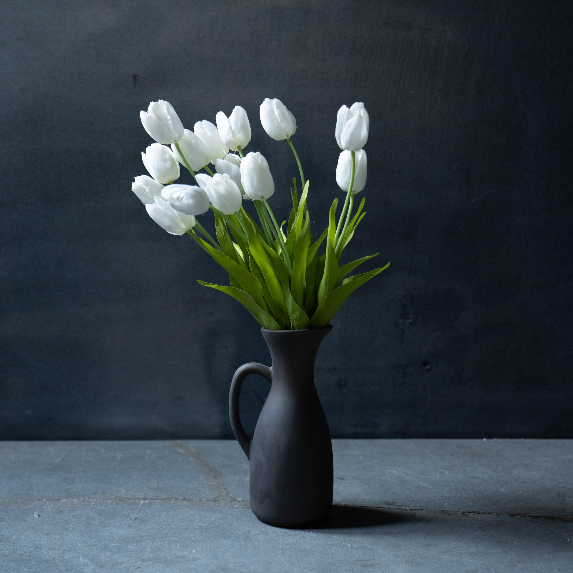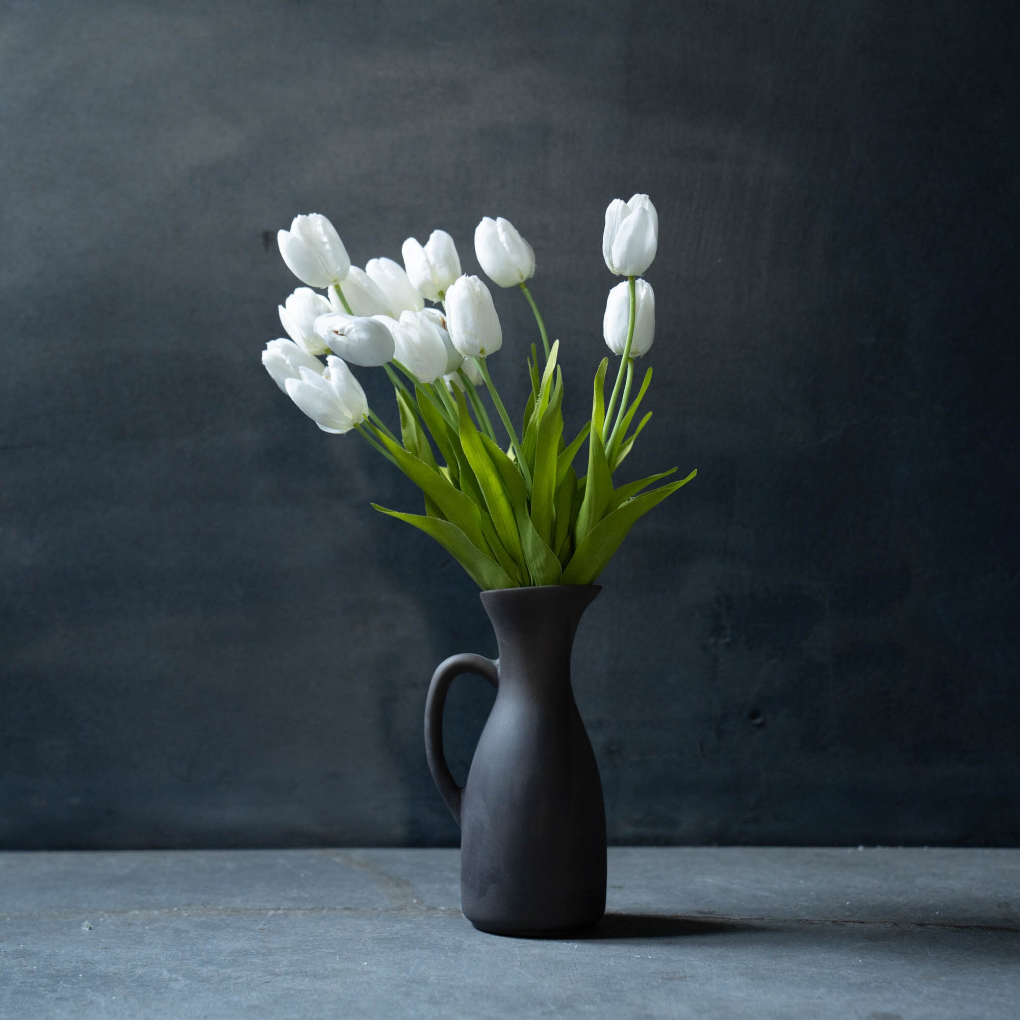 フローリストが丁寧に仕立てたアーティフィシャルフラワーのブーケと、「かもしか道具店」ピッチャーベースのセットです。
