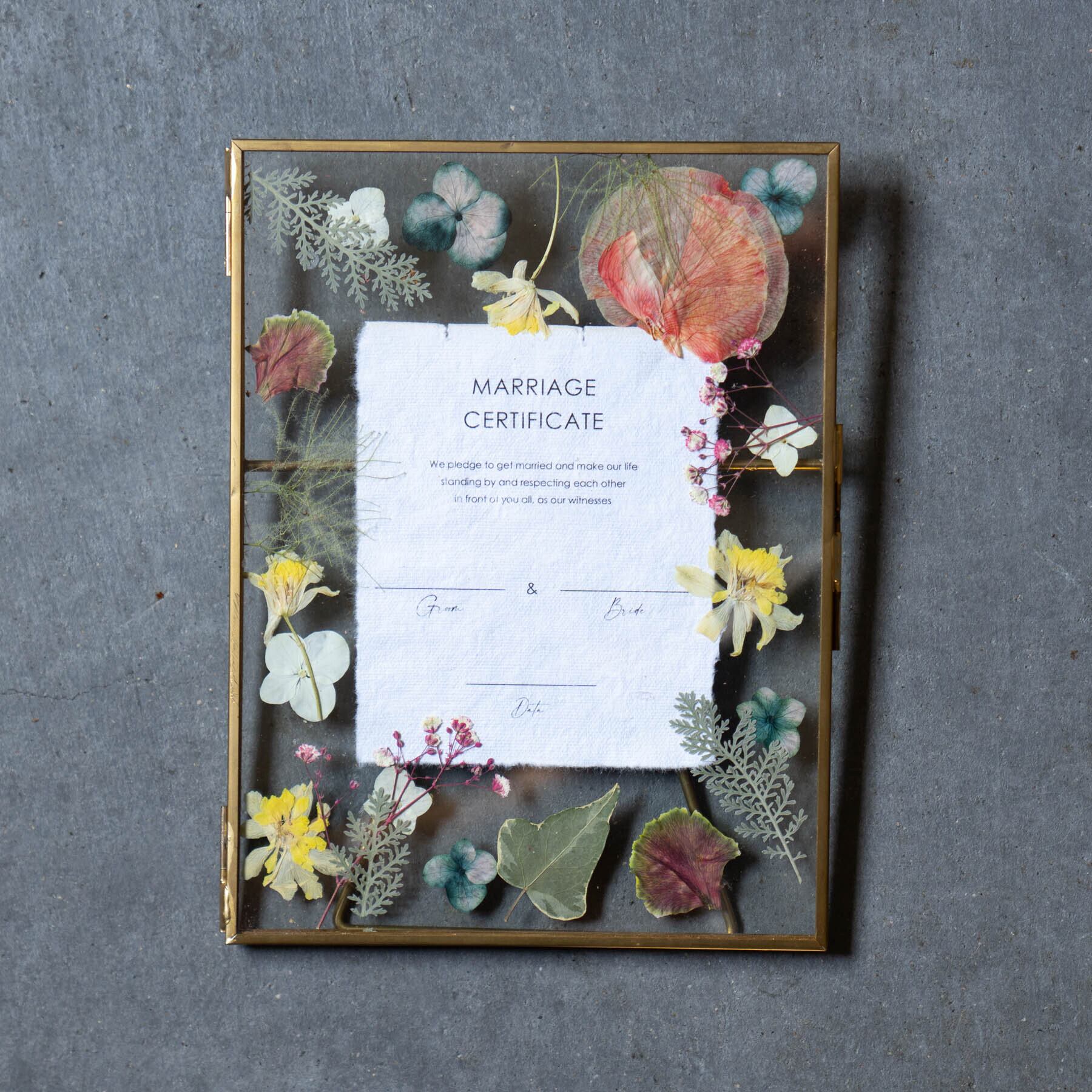 結婚証明書 押し花 プレスフラワー 結婚式 ウェディング ハンドメイド 記念 思い出 プレゼント ギフト インテリア フレーム 結婚 ゲスト参加 おしゃれ