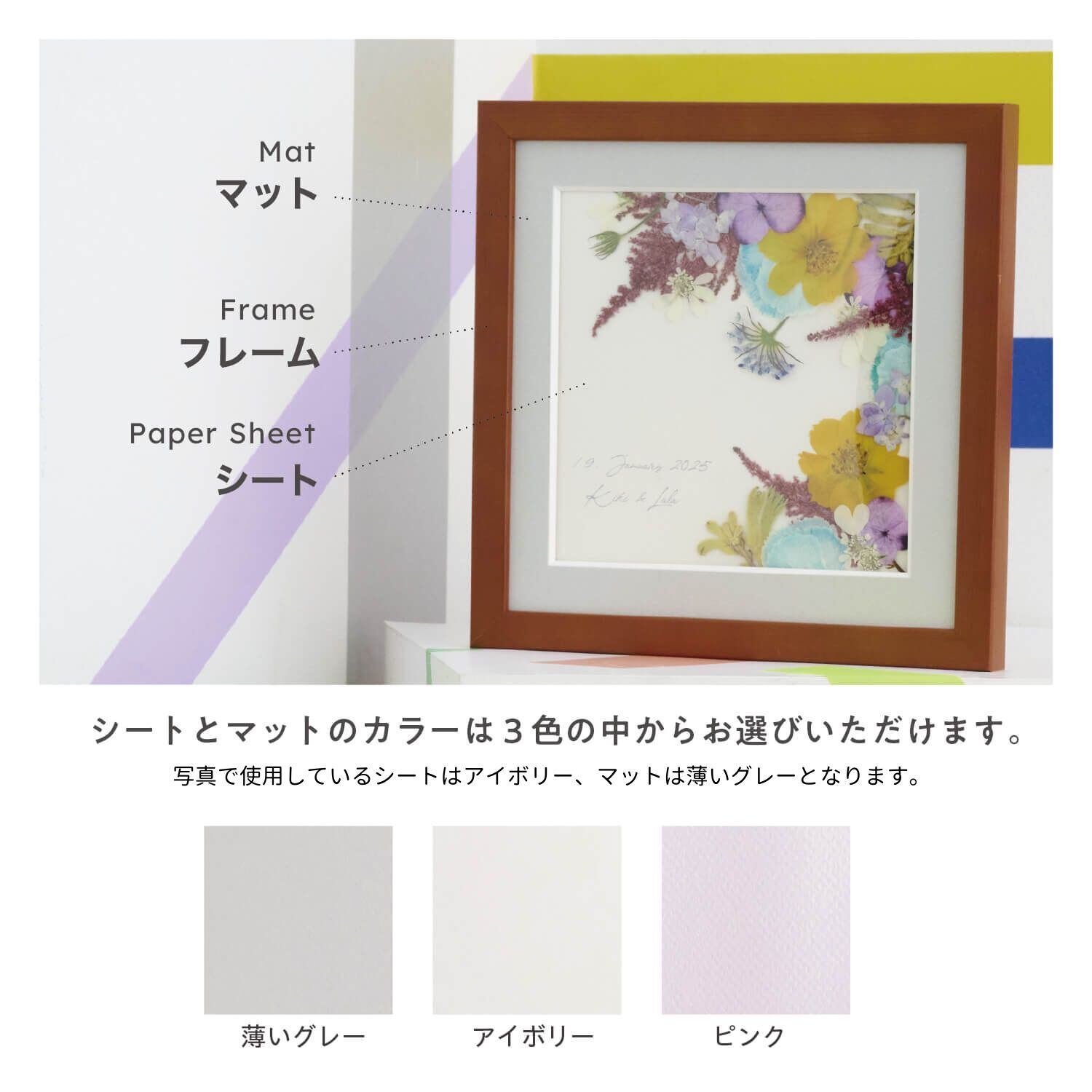 額の中のシートとマットを、アイボリー・薄いグレー・ピンクの3色からお選びいただけます。