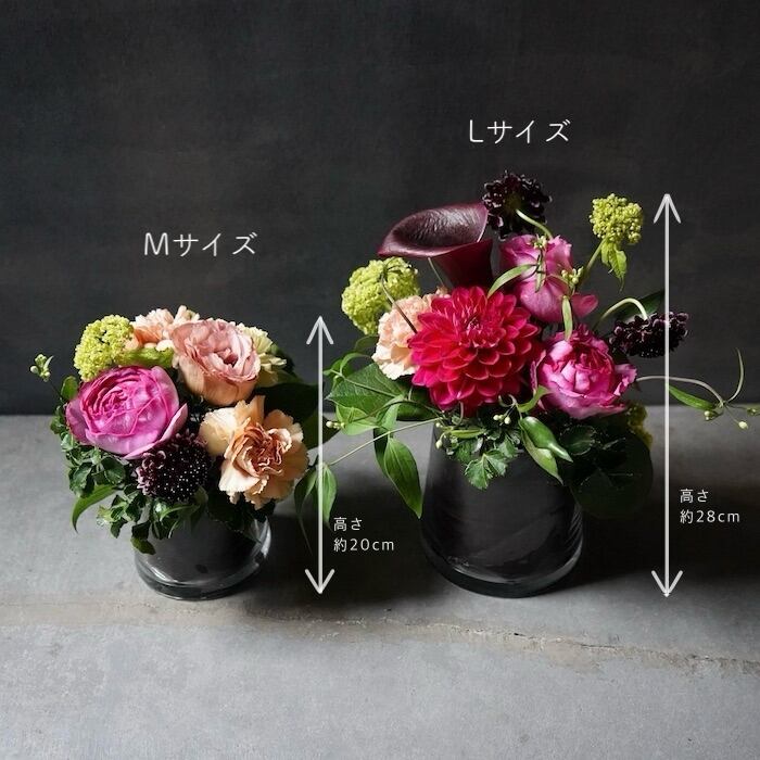 生花は一つ一つ個体差があり、季節によって入荷出来るお花も異なります。掲載している写真はあくまで一例であり、実際に使用する花材はその都度変わりますので、仕上がりは写真通りではないことをご理解頂ける方のみご購入ください。(花材は当店のおまかせとなります。)