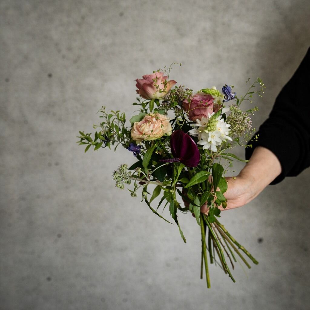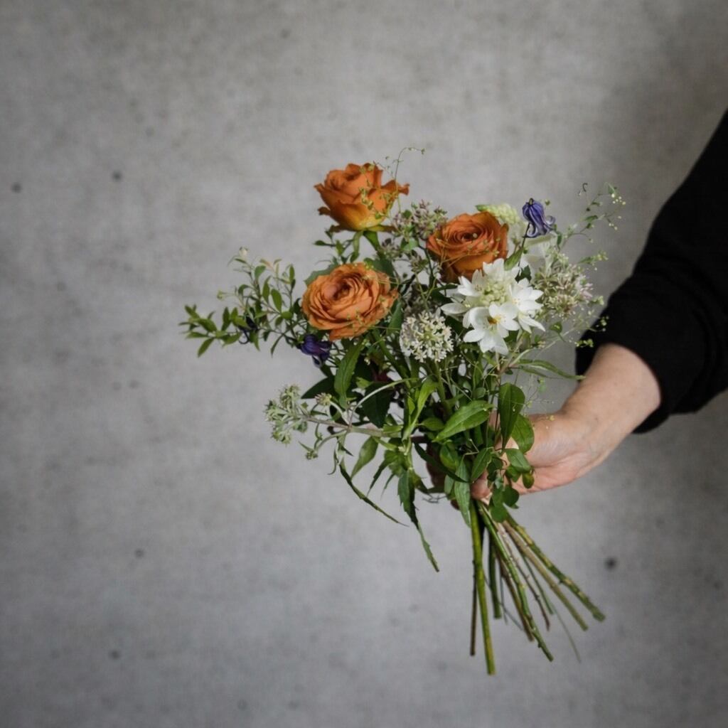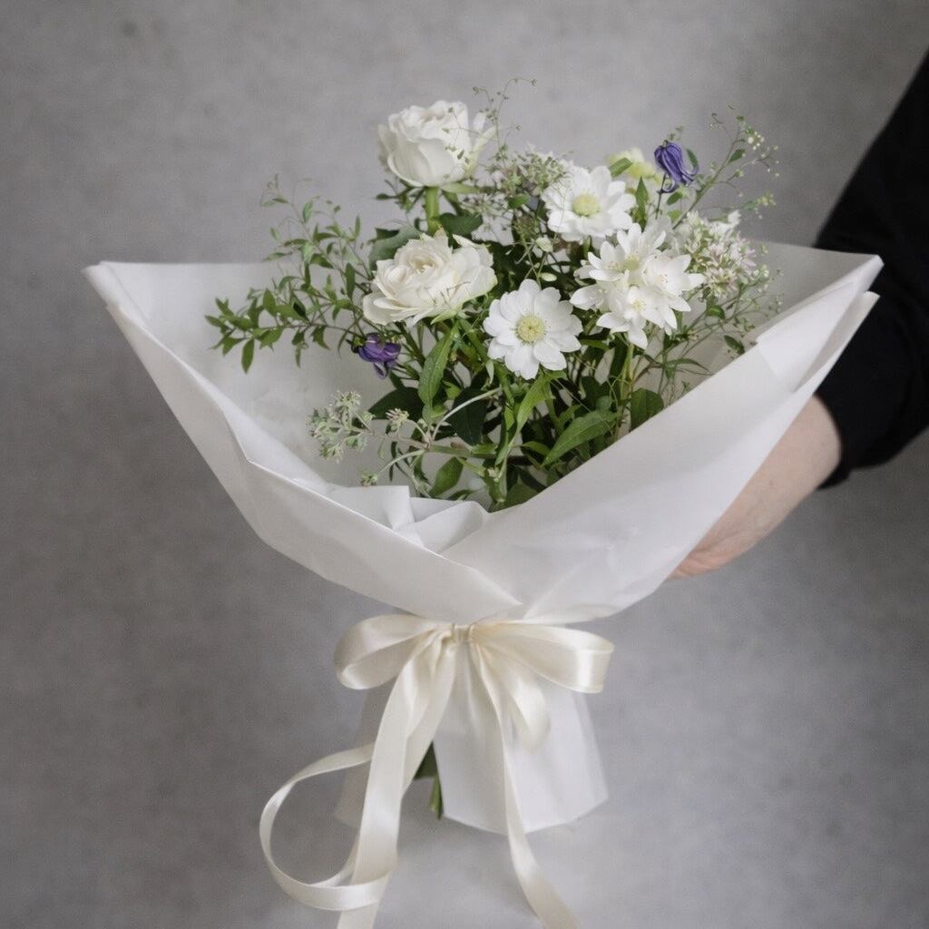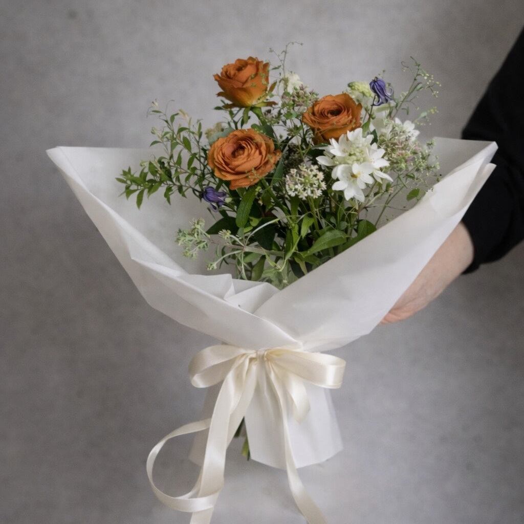 フレッシュで色鮮やかな花々やグリーンを束ねた不動の人気の当店おまかせブーケ。