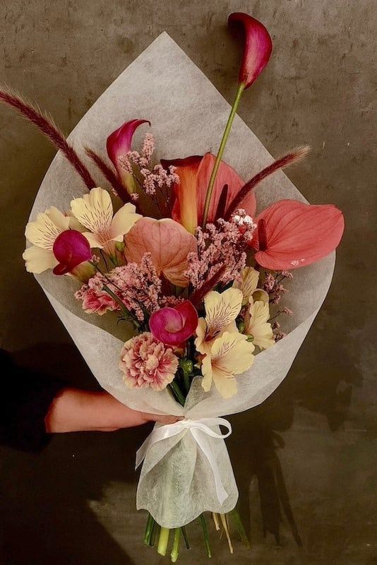 こちらのブーケは華やかなので、送別・記念日・お祝いなどの贈り物としてご好評いただいています。