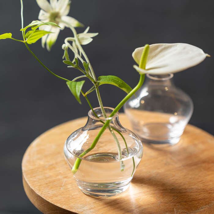 ころんとした形が可愛いCLAYcourbeのガラスベース。