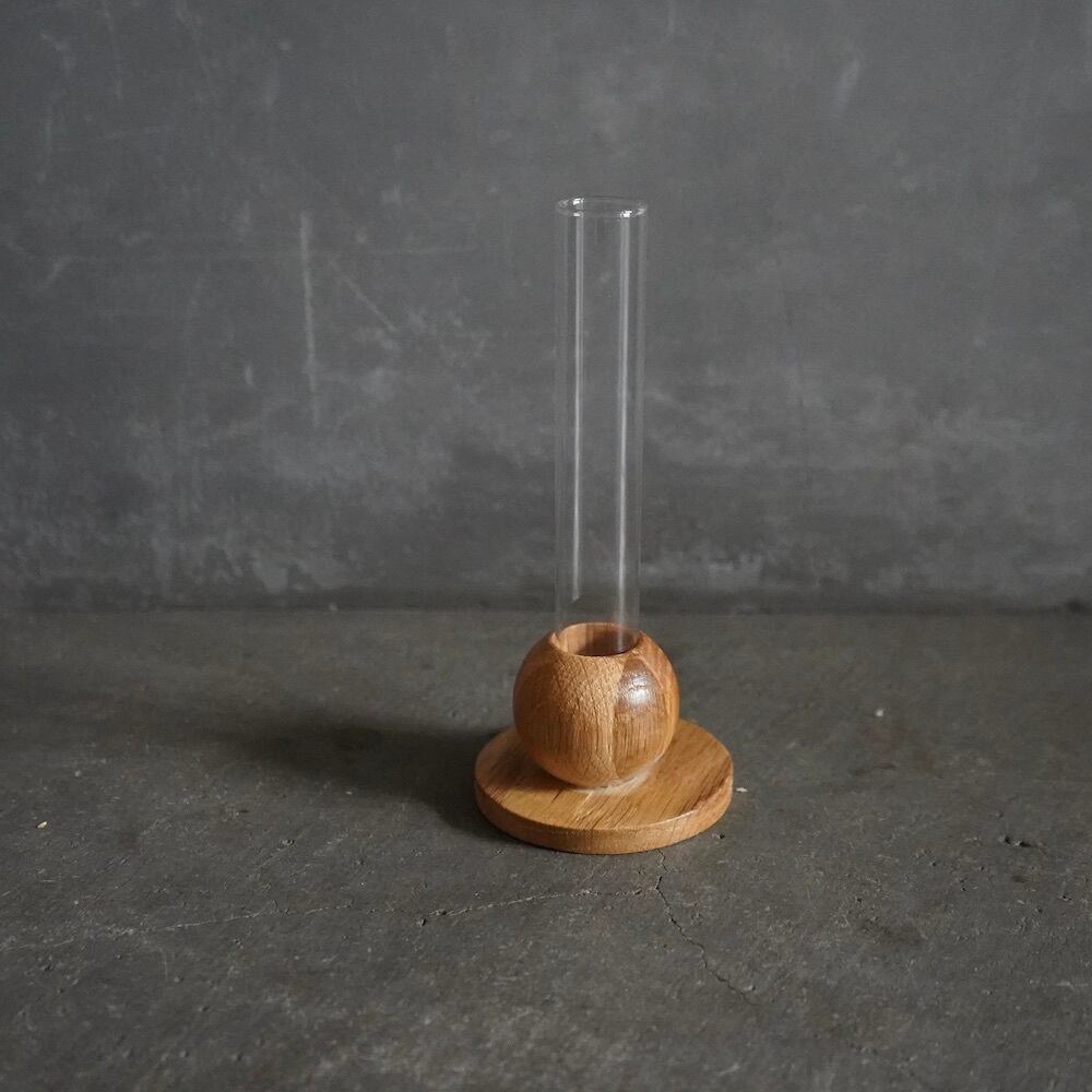 ぬくもりを感じさせる天然木と無機質なガラスシリンダーの組み合わせが軽やかでスタイリッシュな一輪挿しです。