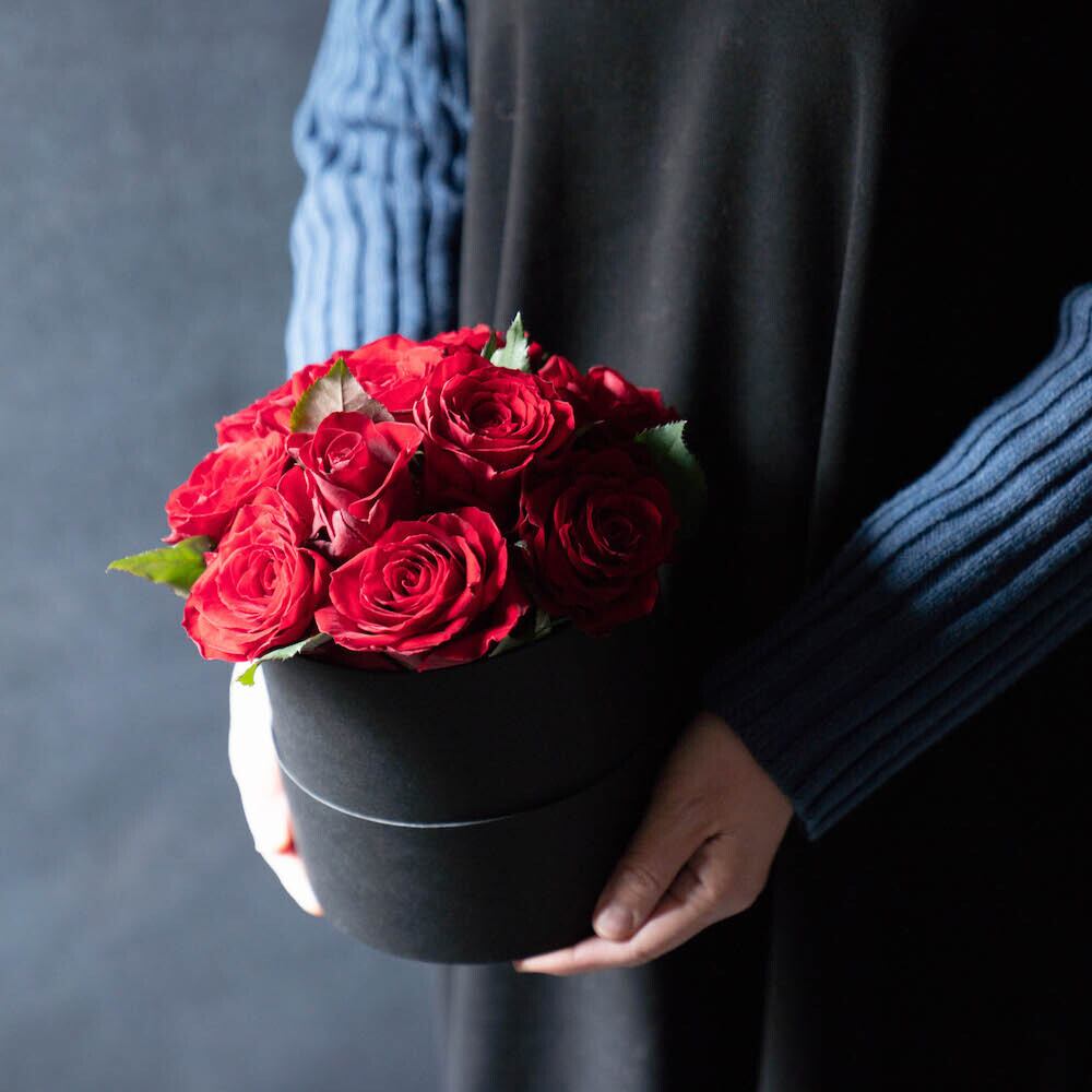 バラだけをぎゅっと詰め込んだ、シンプルだけどインパクト抜群のアレンジメントを、大切な方へ贈りませんか?