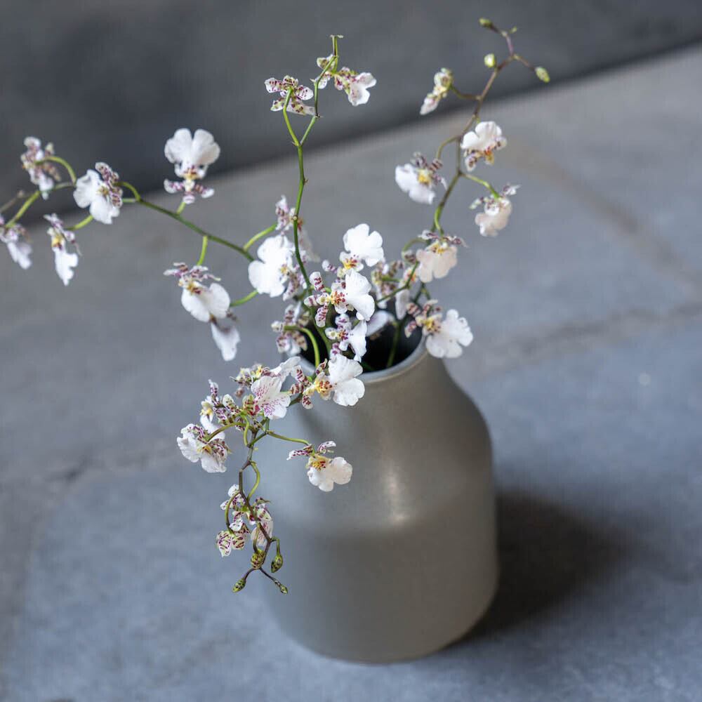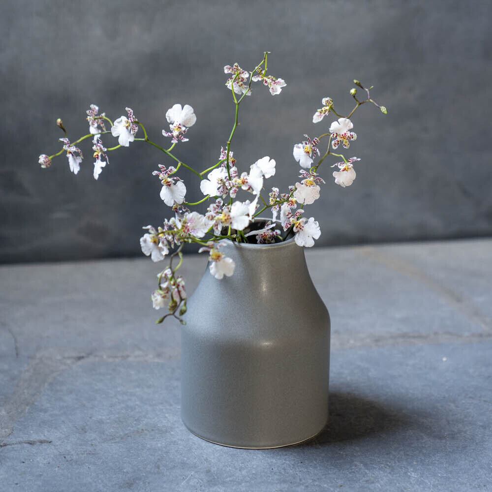玄関や窓辺、食卓にも馴染むシンプルな半磁器製の花器は、広口でお花のボリュームも出しやすく洗いやすい便利なアイテムです。