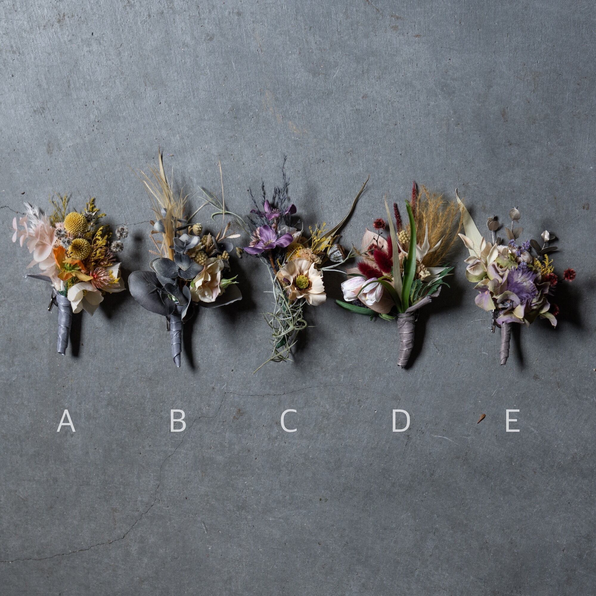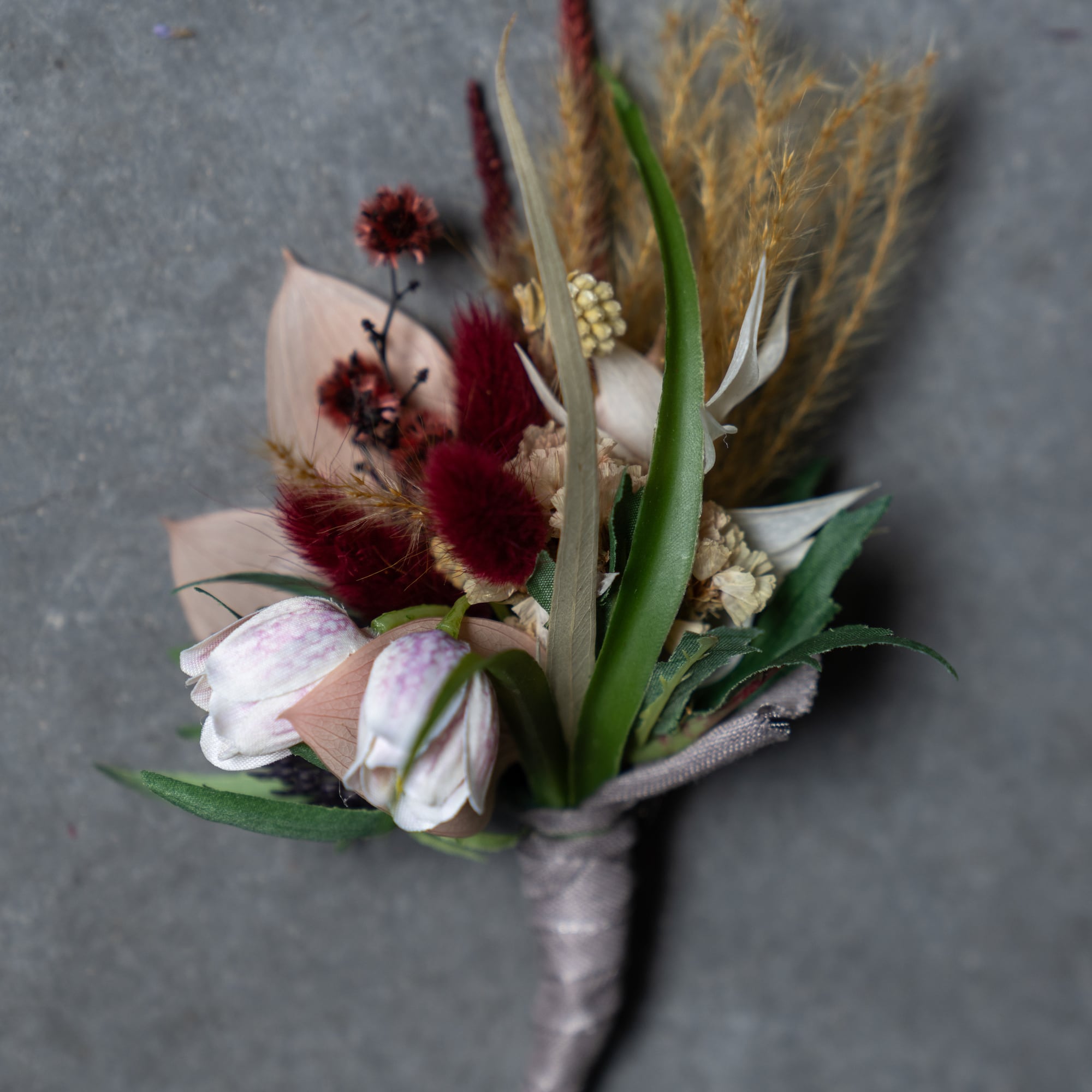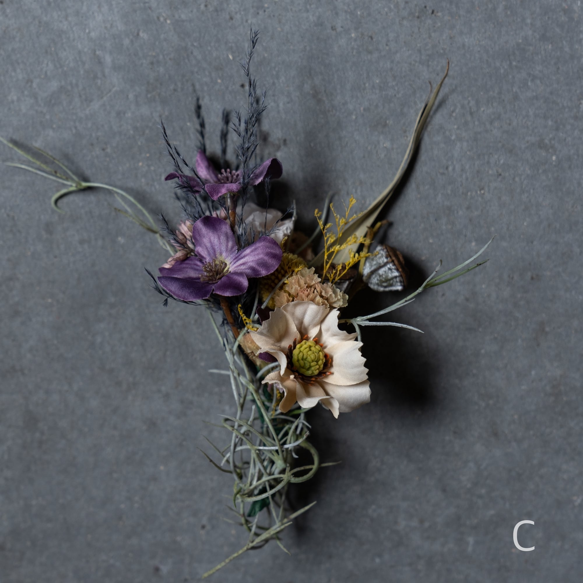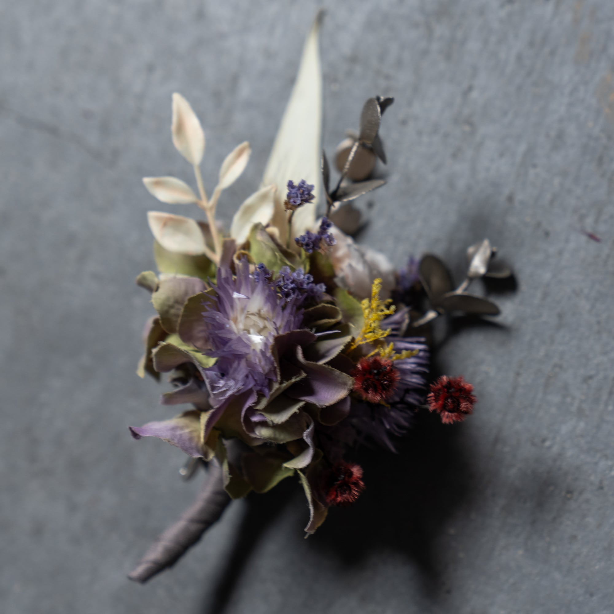 ドライフラワーとアーティフィシャルフラワー(造花)をmixしたコサージュです。
