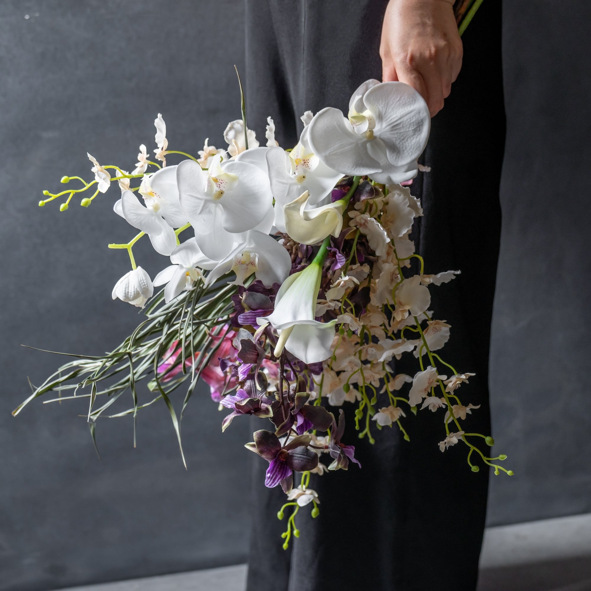 ●こちらはアーティフィシャルフラワーで制作したブーケです。花材は一部変更になる場合がございますのでご了承ください。