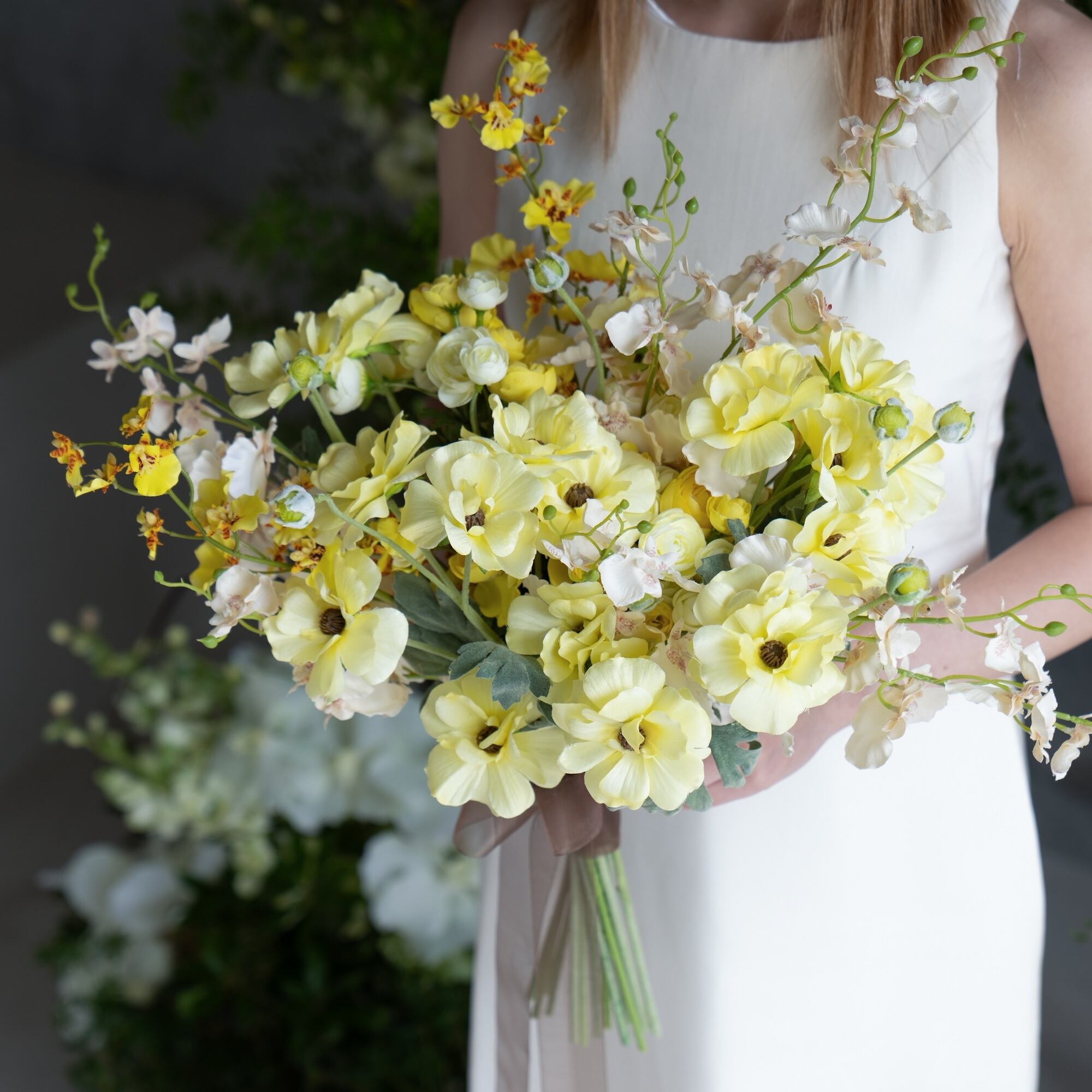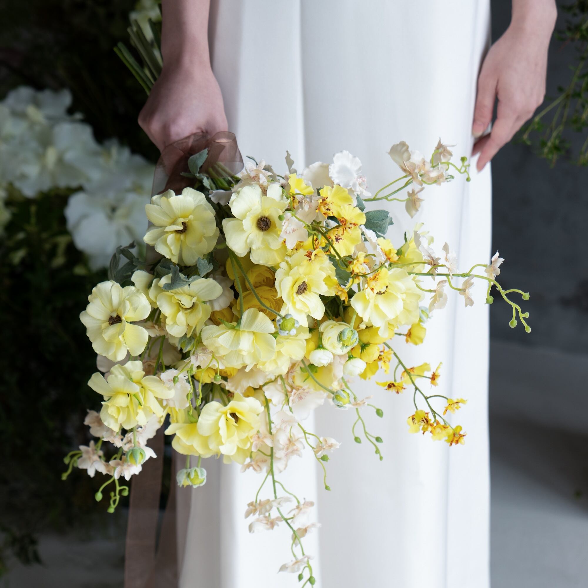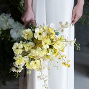 ペールイエローの華やかブーケ アーティフィシャルフラワーブーケ ウェディングブーケ 造花ブーケ 前撮り