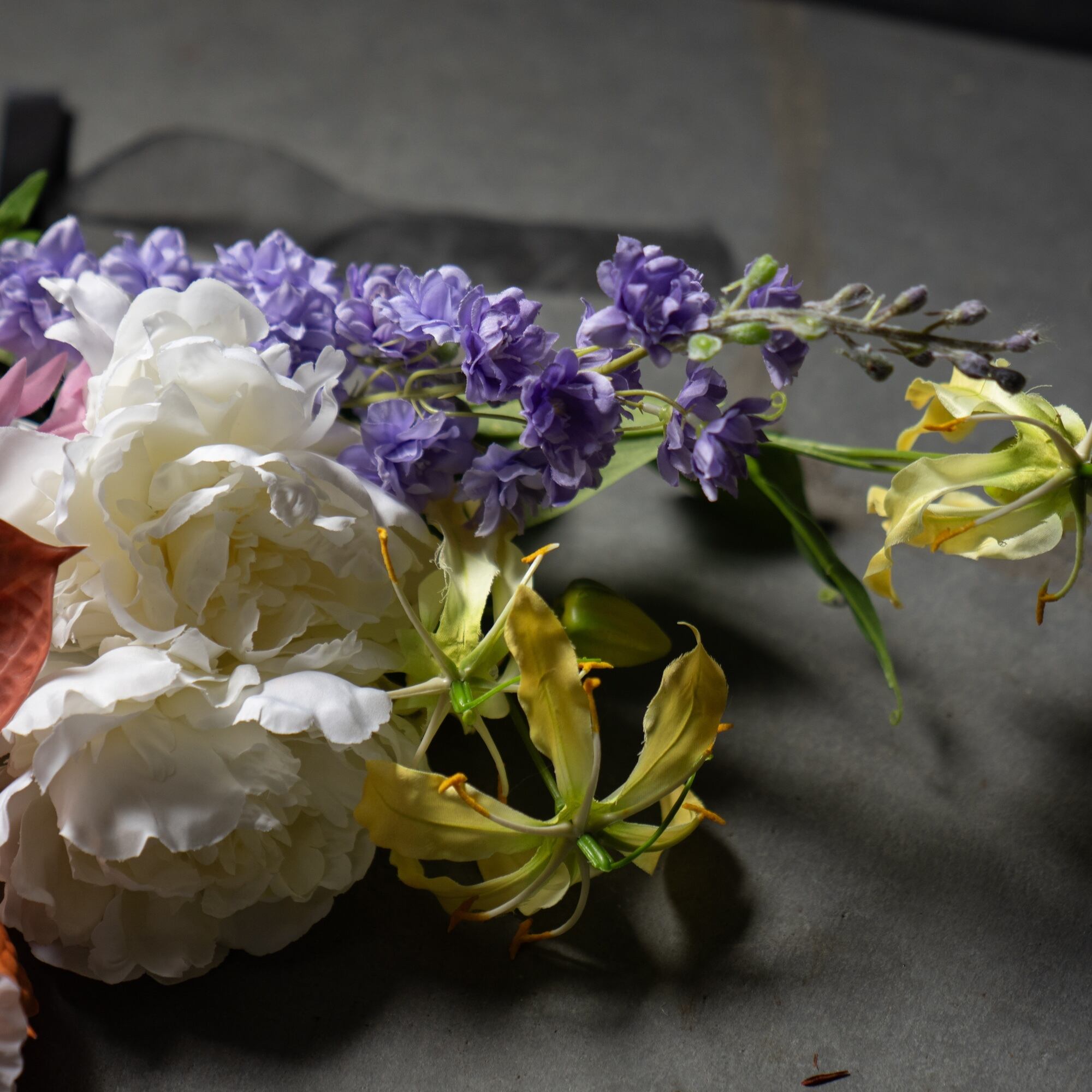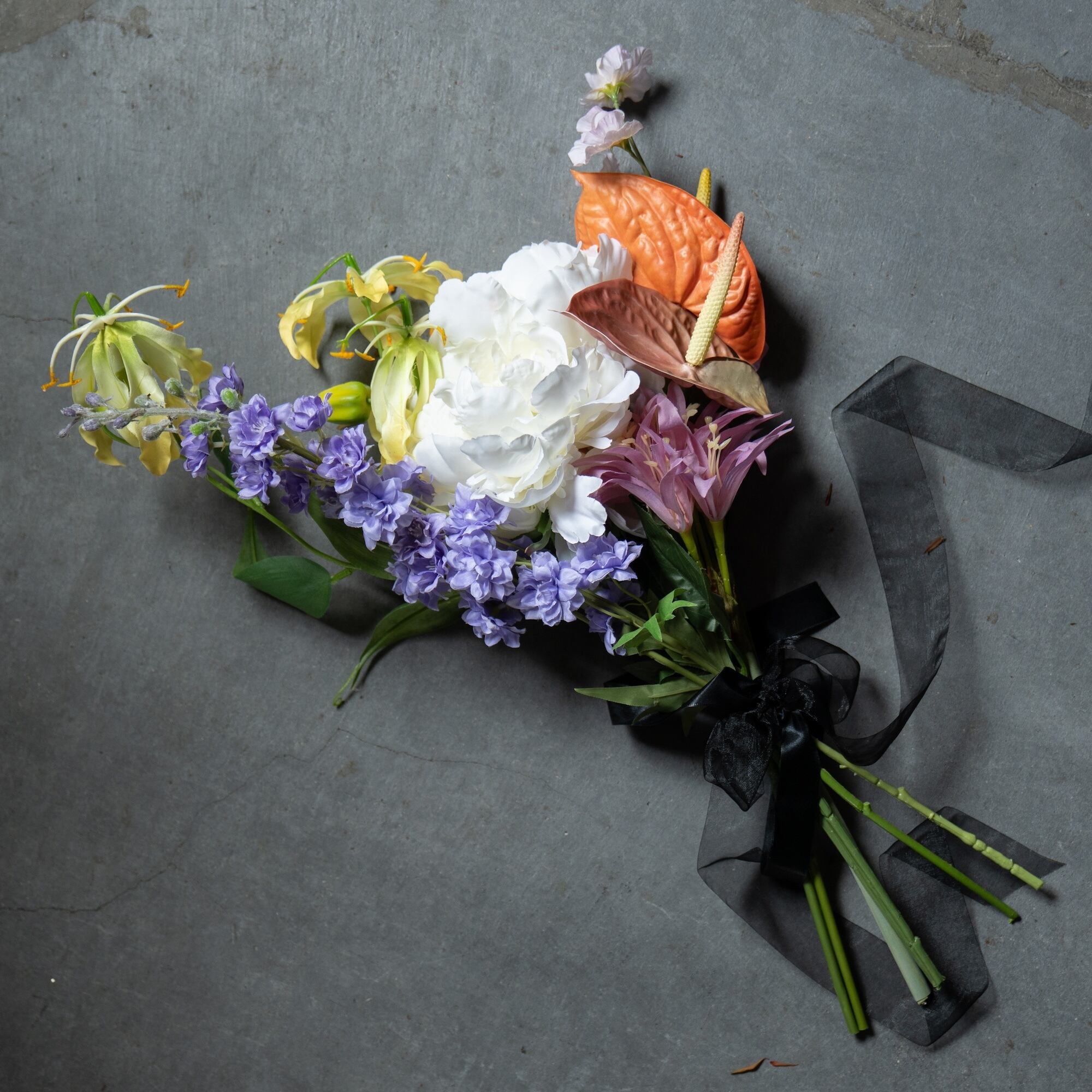 ●こちらはアーティフィシャルフラワーで制作したブーケです。花材は一部変更になる場合がございますのでご了承ください。